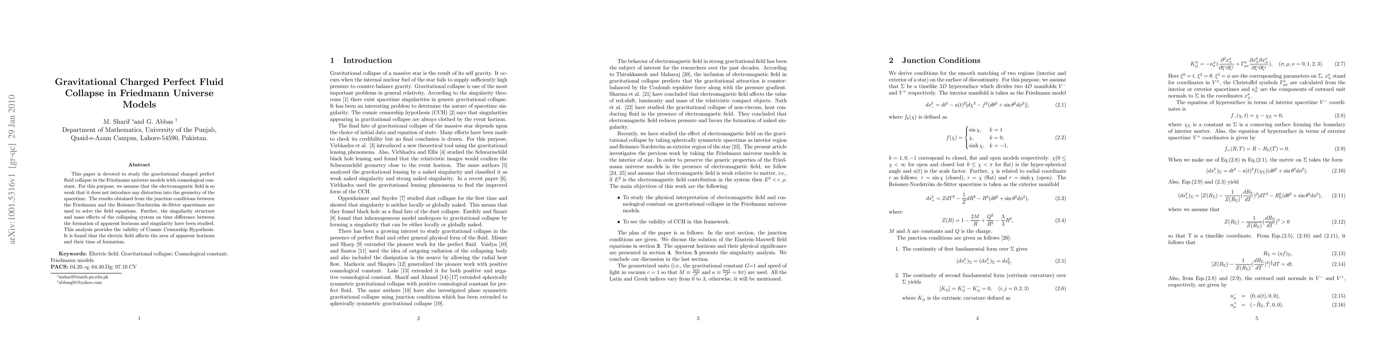 This paper is devoted to study the gravitational charged perfect fluid collapse in the Friedmann universe models with cosmological constant. For this purpose, we assume that the electromagnetic field is so weak that it does not introduce any distortion into the geometry of the spacetime. The results obtained from the junction conditions between the Friedmann and the Reissner-Nordstr$\ddot{o}$m de-Sitter spacetimes are used to solve the field equations. Further, the singularity structure and mass effects of the collapsing system on time difference between the formation of apparent horizons and singularity have been studied. This analysis provides the validity of Cosmic Censorship Hypothesis. It is found that the electric field affects the area of apparent horizons and their time of formation.