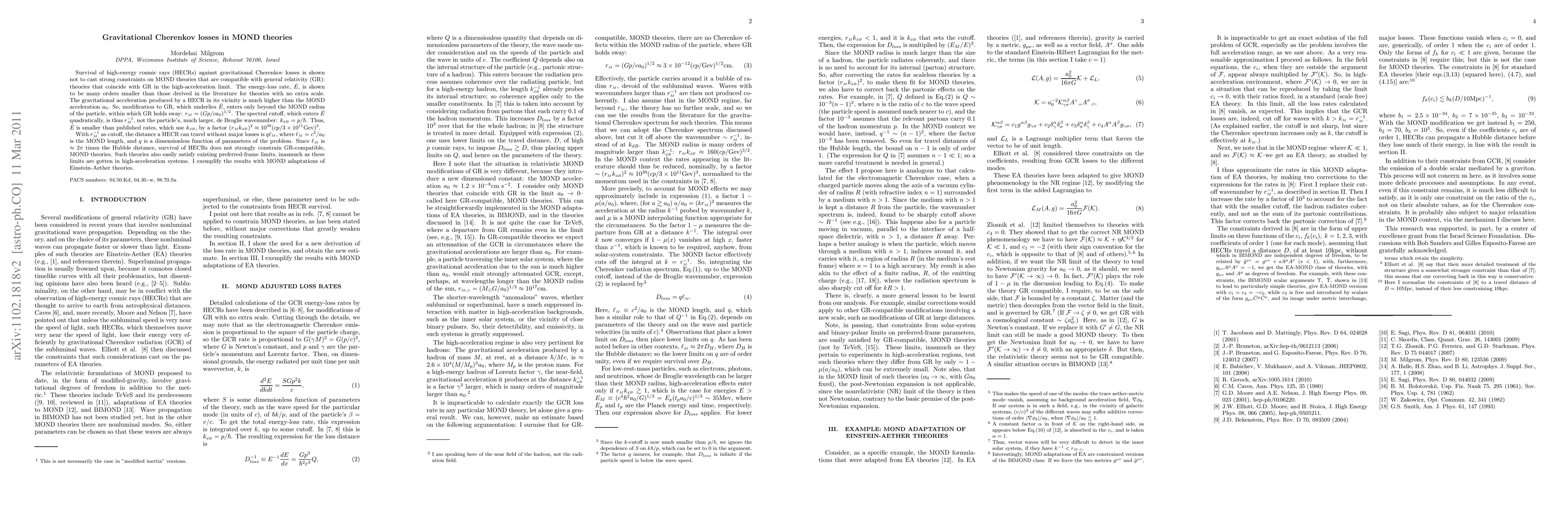 This paper demonstrates that high-energy cosmic rays' survival against gravitational Cherenkov losses does not impose strong constraints on Modified Newtonian Dynamics (MOND) theories compatible with general relativity. The energy-loss rate is significantly lower than previously thought due to the use of the MOND radius as a cutoff, rather than the particle's de Broglie wavenumber.