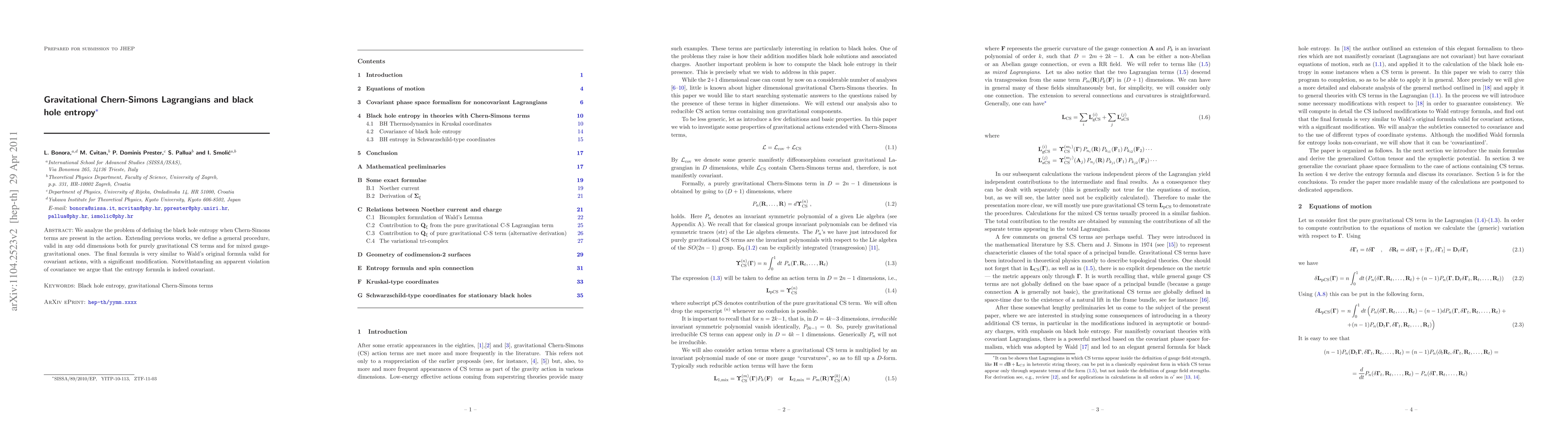 This paper develops a method to define black hole entropy in the presence of Chern-Simons terms in gravitational actions, providing a similar formula to Wald's, though modified, and argues for its covariance despite apparent violations.