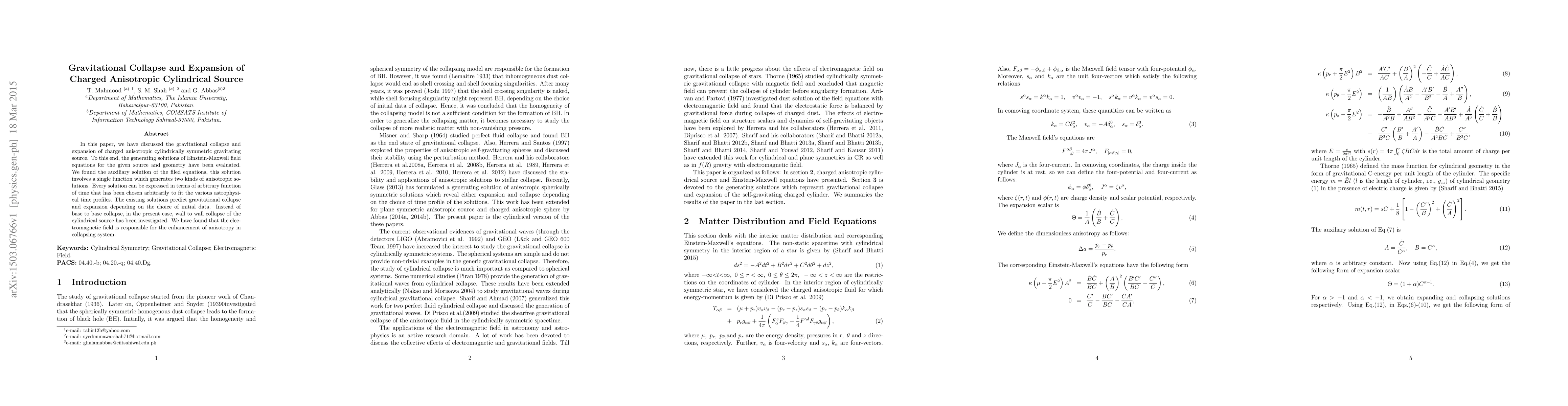 This paper investigates the gravitational collapse and expansion of charged, anisotropic cylindrically symmetric gravitating sources using Einstein-Maxwell field equations. It finds that the electromagnetic field enhances anisotropy in the collapsing system, predicting collapse and expansion based on initial data, with a focus on wall-to-wall collapse instead of base-to-base.