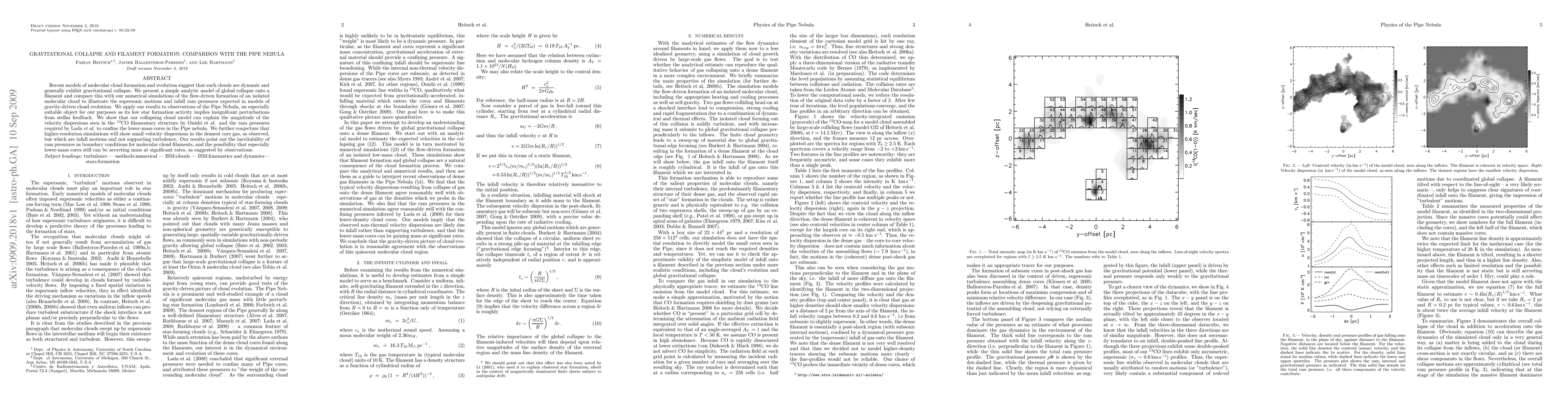 This paper presents an analytic model of gravitational collapse onto a filament and compares it with numerical simulations of isolated molecular cloud formation, applying the results to the Pipe Nebula. The study finds that the model explains observed velocity dispersions and ram pressures, suggesting that lower-mass cores in molecular clouds may still be accreting mass at significant rates.