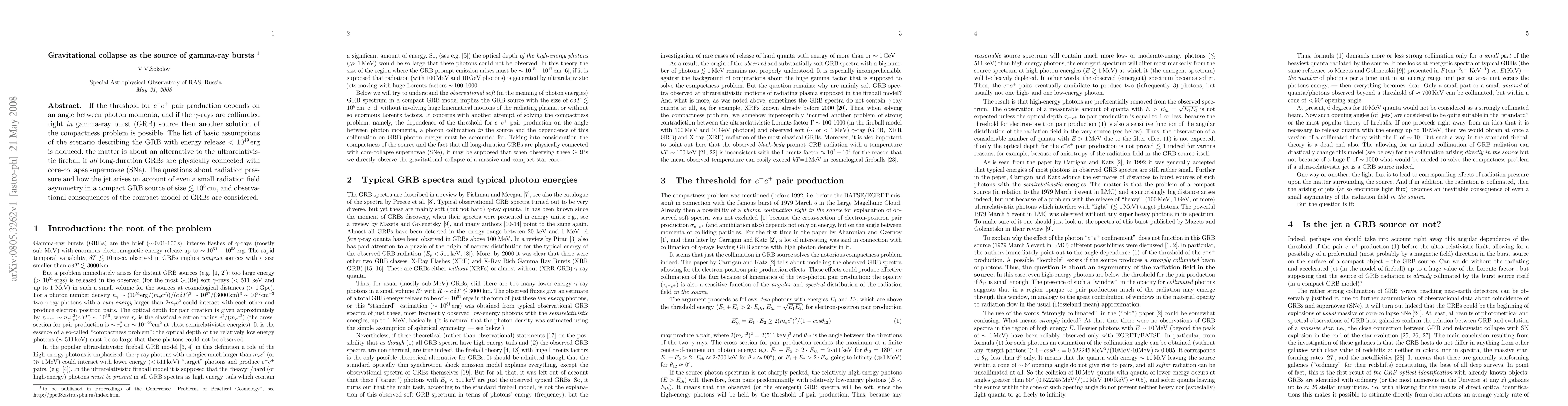 If the threshold for $e^{-}e^{+}$ pair production depends on an angle between photon momenta, and if the $\gamma$-rays are collimated right in gamma-ray burst (GRB) source then another solution of the compactness problem is possible. The list of basic assumptions of the scenario describing the GRB with energy release $< 10^{49}$ erg is adduced: the matter is about an alternative to the ultrarelativistic fireball if all long-duration GRBs are physically connected with core-collapse supernovae (SNe). The questions about radiation pressure and how the jet arises on account of even a small radiation field asymmetry in a compact GRB source of size $\lesssim 10^8$ cm, and observational consequences of the compact model of GRBs are considered.