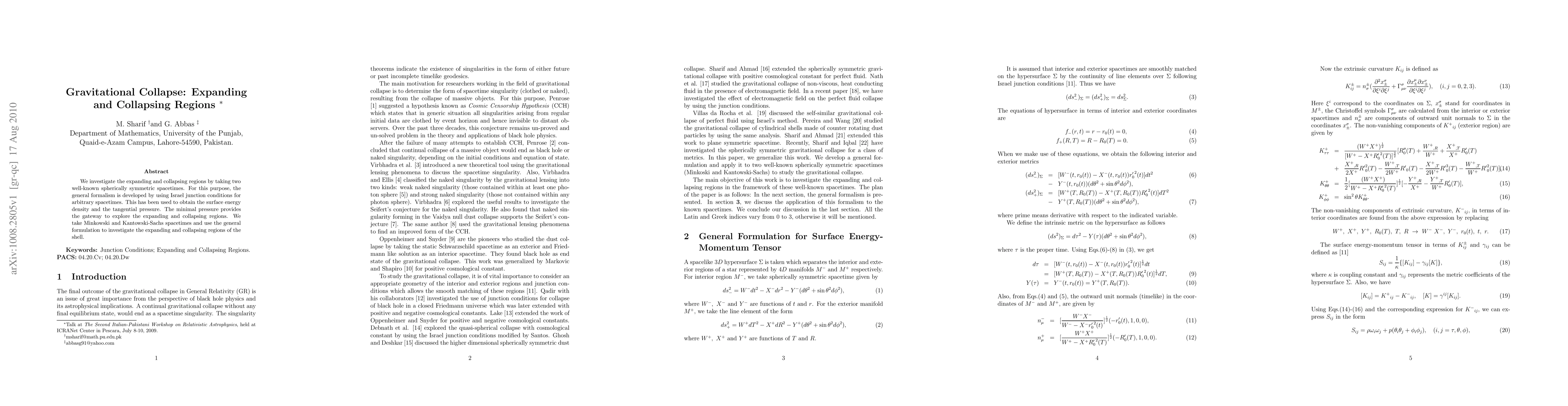 This paper develops a general formalism using Israel junction conditions to study the expanding and collapsing regions in spherically symmetric spacetimes, applying it to Minkowski and Kantowski-Sachs spacetimes to determine surface energy density and tangential pressure. The minimal pressure is identified as a key factor in exploring these regions.
