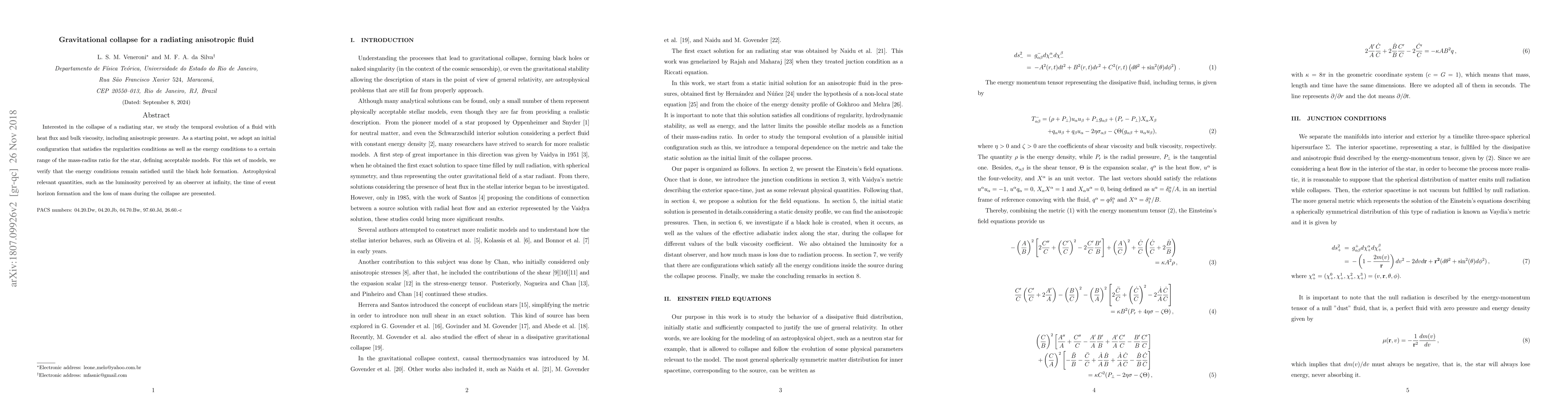 Interested in the collapse of a radiating star, we study the temporal evolution of a fluid with heat flux and bulk viscosity, including anisotropic pressure. As a starting point, we adopt an initial configuration that satisfies the regularities conditions as well as the energy conditions to a certain range of the mass-radius ratio for the star, defining acceptable models. For this set of models, we verify that the energy conditions remain satisfied until the black hole formation. Astrophysical relevant quantities, such as the luminosity perceived by an observer at infinity, the time of event horizon formation and the loss of mass during the collapse are presented.