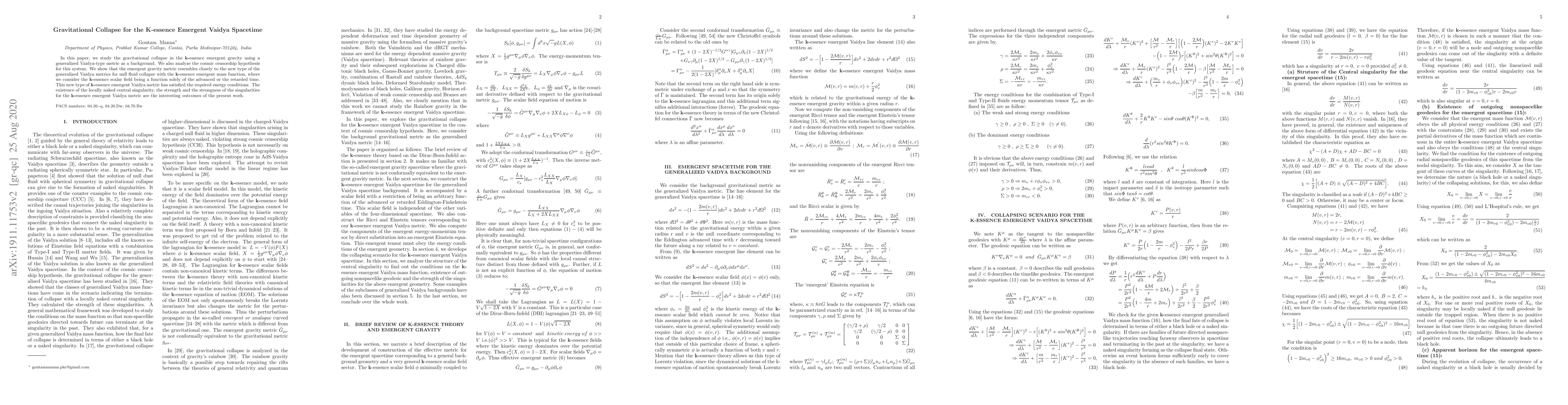 This paper investigates gravitational collapse in k-essence emergent gravity using a generalized Vaidya metric, finding that the k-essence emergent Vaidya metric satisfies energy conditions and reveals locally naked central singularities, challenging the cosmic censorship hypothesis.