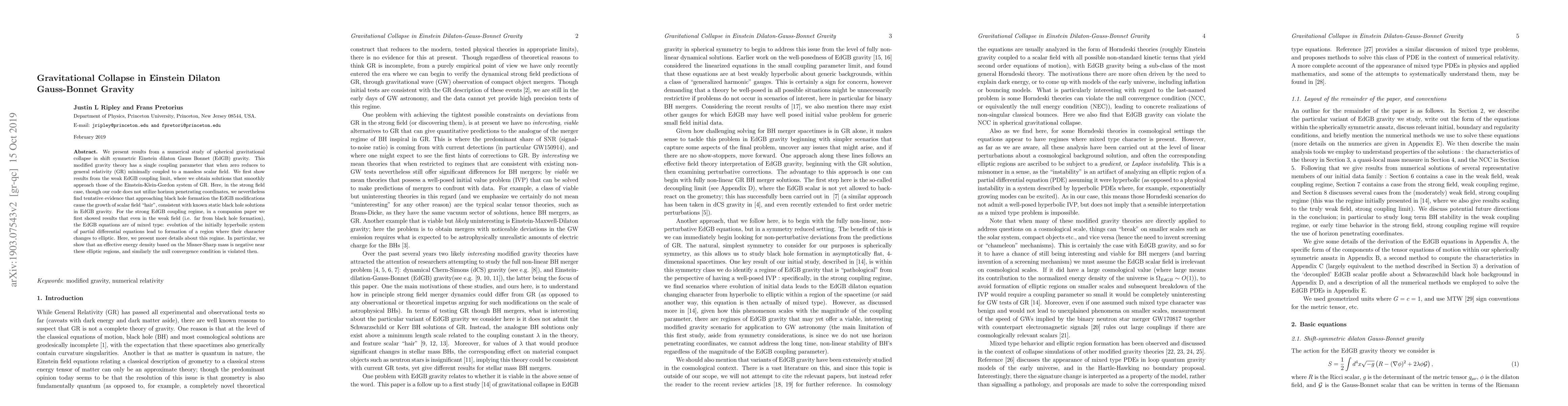 The paper presents a detailed numerical analysis of gravitational collapse in EdGB gravity, identifying mixed-type equations, negative effective energy density regions, and NCC violations in the strong coupling regime.