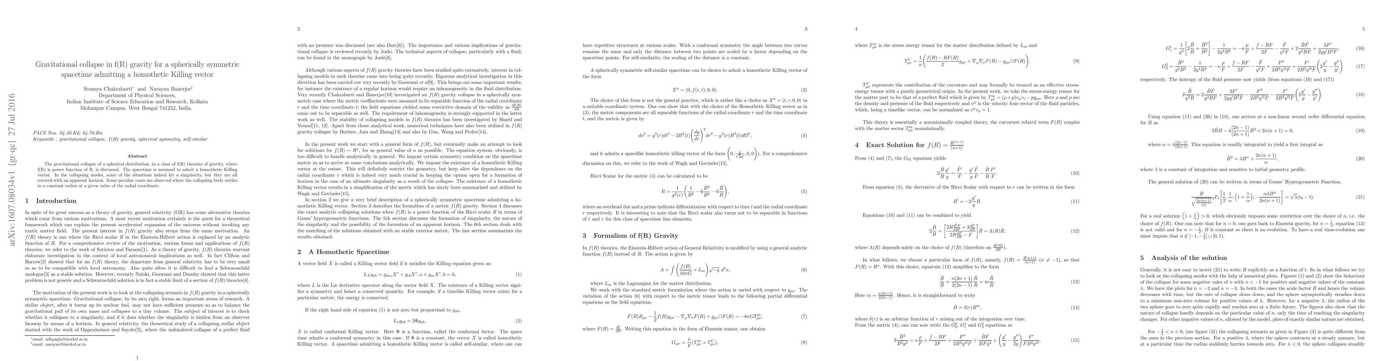 The gravitational collapse of a spherical distribution, in a class of f(R) theories of gravity, where f(R) is power function of R, is discussed. The spacetime is assumed to admit a homothetic Killing vector. In the collapsing modes, some of the situations indeed hit a singularity, but they are all covered with an apparent horizon. Some peculiar cases are observed where the collapsing body settles to a constant radius at a given value of the radial coordinate.