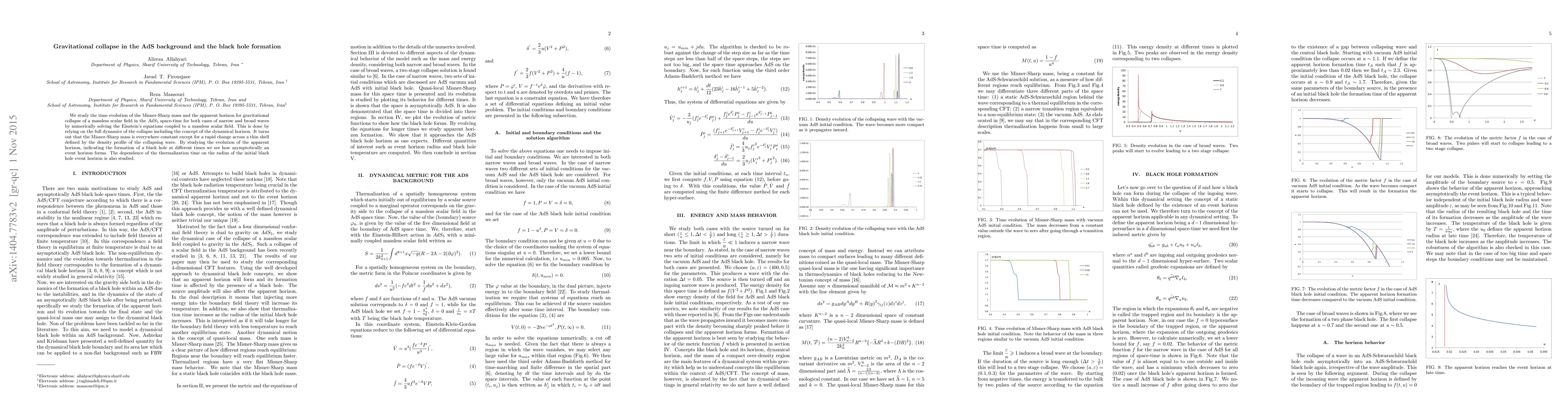 The paper studies gravitational collapse in AdS space-time, finding a rapid change in Misner-Sharp mass across a thin shell as a black hole forms and an asymptotically event horizon forms.