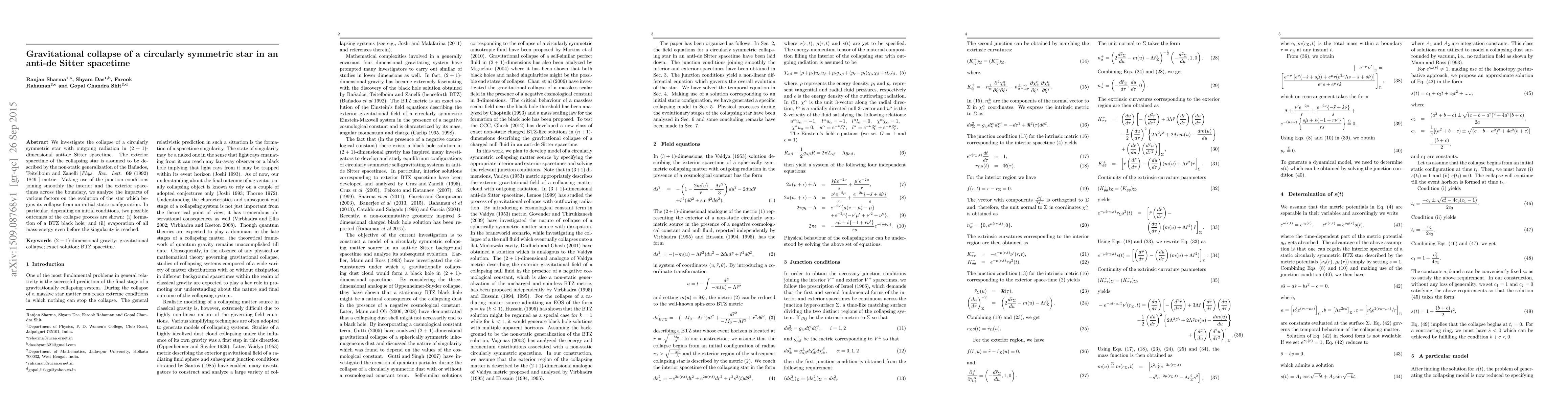 We investigate the collapse of a circularly symmetric star with outgoing radiation in ($2+1$)-dimensional anti-de Sitter spacetime. The exterior spacetime of the collapsing star is assumed to be described by the non-static generalization of the Ba\~nados, Teitelboim and Zanelli [{\em Phys. Rev. Lett.} {\bf 69} (1992) 1849 ] metric. Making use of the junction conditions joining smoothly the interior and the exterior spacetimes across the boundary, we analyze the impacts of various factors on the evolution of the star which begins its collapse from an initial static configuration. In particular, depending on initial conditions, two possible outcomes of the collapse process are shown: (i) formation of a BTZ black hole, and (ii) evaporation of all mass-energy even before the singularity is reached.