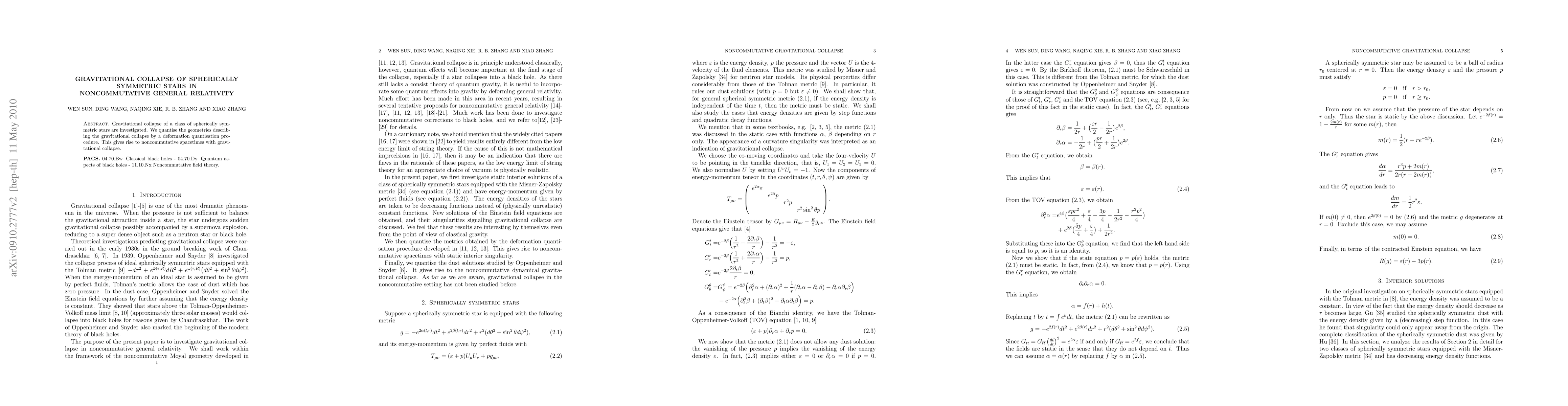 This paper explores the gravitational collapse of spherically symmetric stars within the framework of noncommutative general relativity, employing a deformation quantization procedure to generate noncommutative spacetimes. The study reveals how noncommutativity affects the dynamics of gravitational collapse.