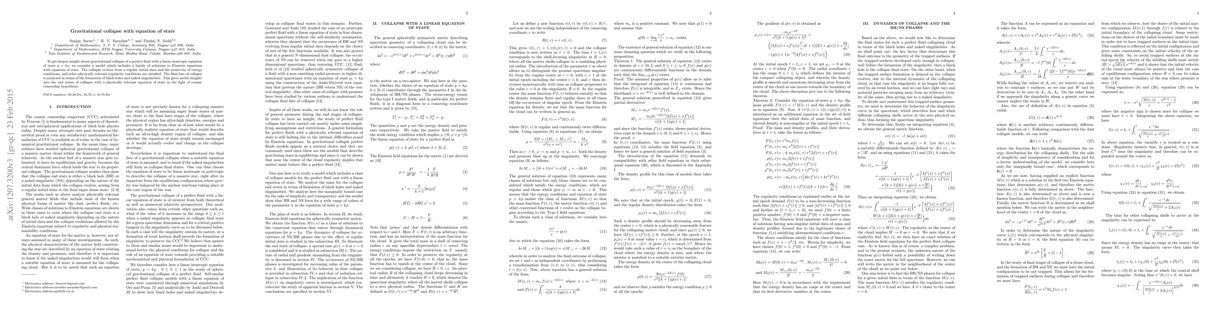This paper explores gravitational collapse of perfect fluids with a linear isentropic equation of state, $p = k \rho$, providing a class of solutions to Einstein equations. It analyzes the final fate of collapse, focusing on black hole formation and naked singularities, while satisfying energy conditions and physical regularity.