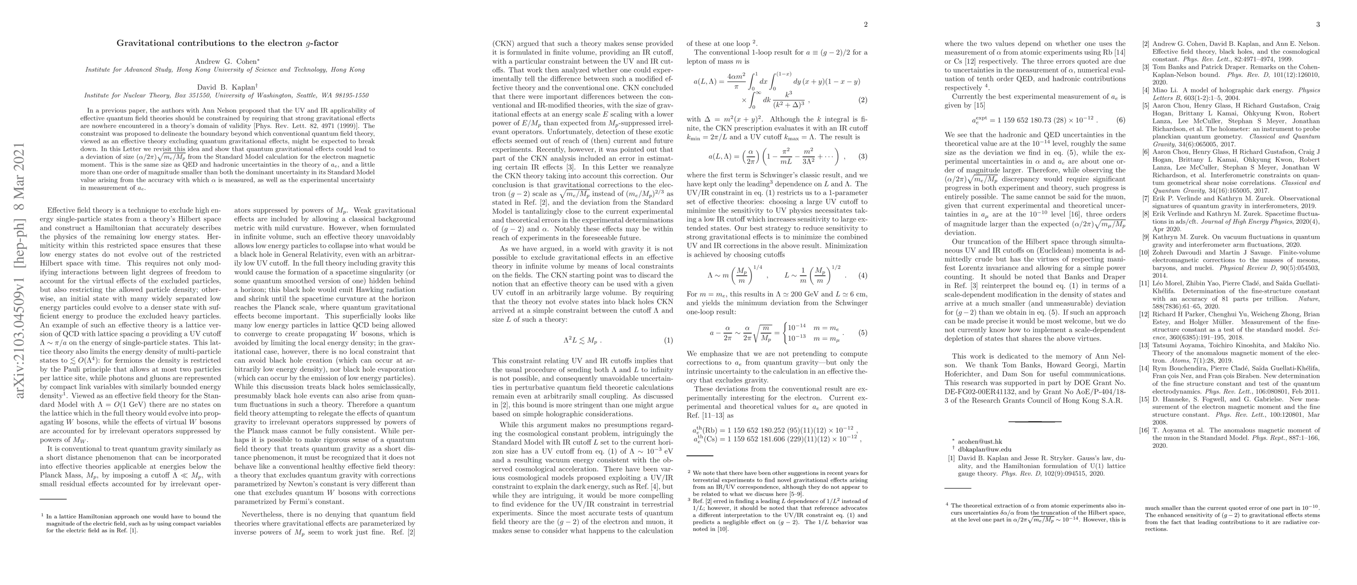 In a previous paper, the authors with Ann Nelson proposed that the UV and IR applicability of effective quantum field theories should be constrained by requiring that strong gravitational effects are nowhere encountered in a theory's domain of validity [Phys. Rev. Lett. 82, 4971 (1999)]. The constraint was proposed to delineate the boundary beyond which conventional quantum field theory, viewed as an effective theory excluding quantum gravitational effects, might be expected to break down. In this Letter we revisit this idea and show that quantum gravitational effects could lead to a deviation of size $(\alpha/2\pi)\sqrt{m_e/M_p}$ from the Standard Model calculation for the electron magnetic moment. This is the same size as QED and hadronic uncertainties in the theory of $a_e$, and a little more than one order of magnitude smaller than both the dominant uncertainty in its Standard Model value arising from the accuracy with which $\alpha$ is measured, as well as the experimental uncertainty in measurement of $a_e$.