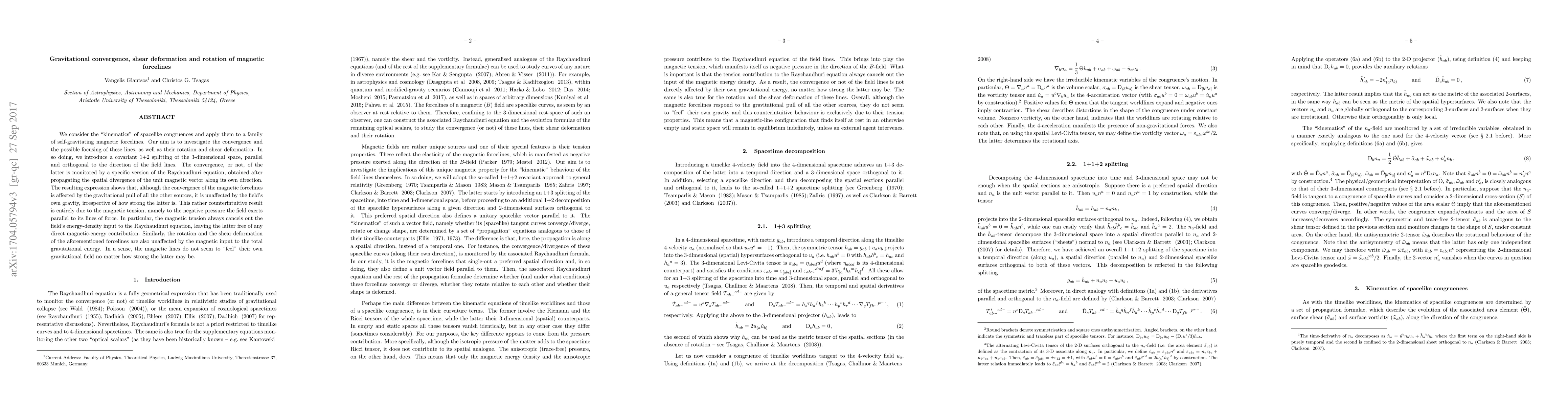 This research examines magnetic forcelines' convergence, rotation, and shear deformation in self-gravitating fields using a covariant 1+2 splitting. It finds that magnetic tension counteracts the field's energy-density input, leaving the Raychaudhuri equation unaffected by magnetic energy. Thus, magnetic lines remain uninfluenced by their own gravity, regardless of its strength.