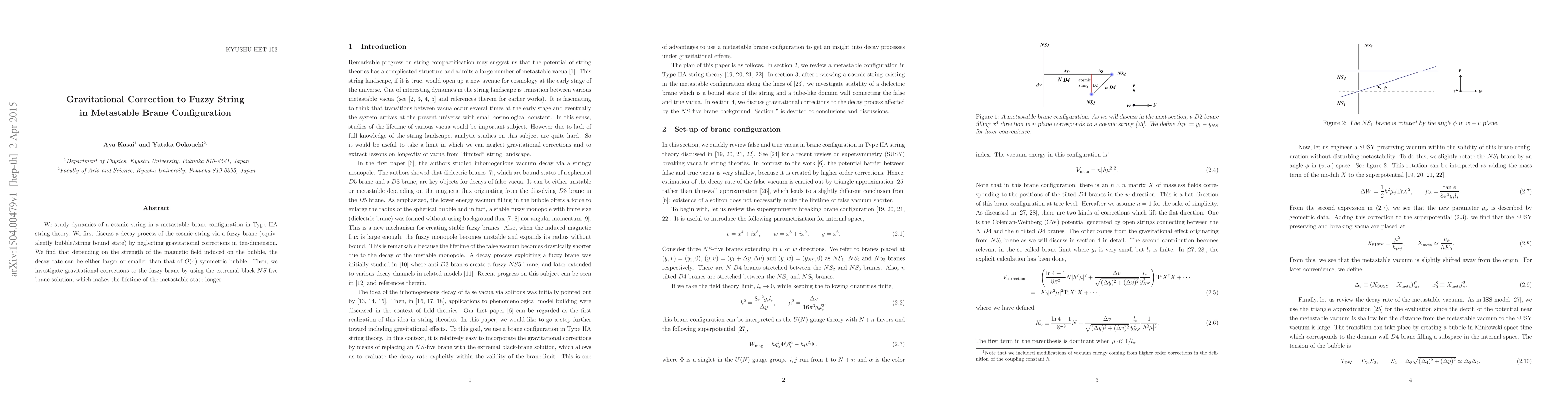 We study dynamics of a cosmic string in a metastable brane configuration in Type IIA string theory. We first discuss a decay process of the cosmic string via a fuzzy brane (equivalently bubble/string bound state) by neglecting gravitational corrections in ten-dimension. We find that depending on the strength of the magnetic field induced on the bubble, the decay rate can be either larger or smaller than that of $O(4)$ symmetric bubble. Then, we investigate gravitational corrections to the fuzzy brane by using the extremal black $NS$-five brane solution, which makes the lifetime of the metastable state longer.