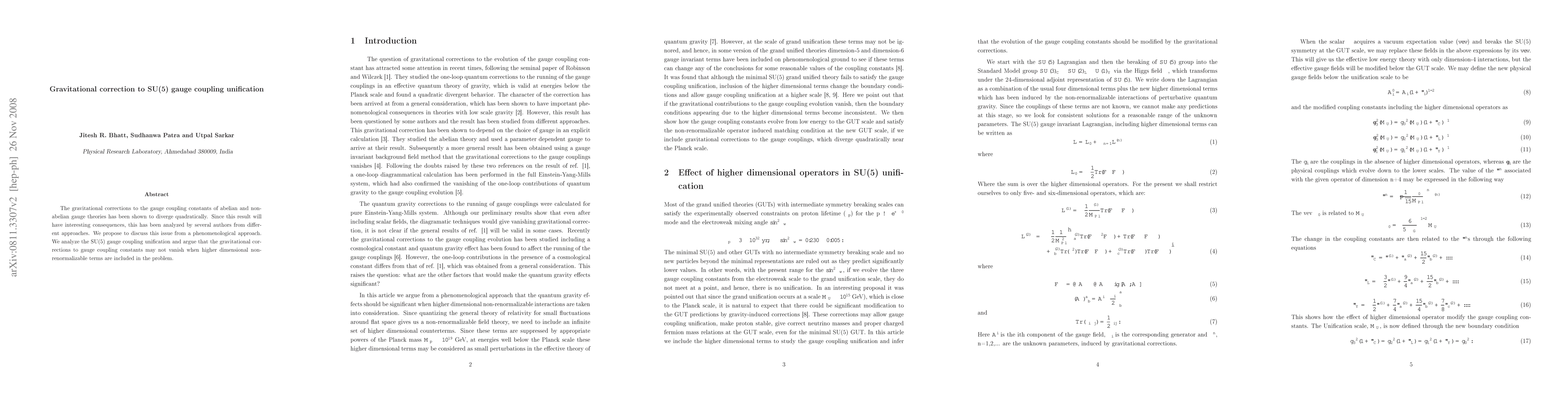 This paper investigates the gravitational corrections to the gauge coupling unification in the SU(5) model, arguing that these corrections may not vanish when higher-dimensional non-renormalizable terms are considered, challenging the conventional view.