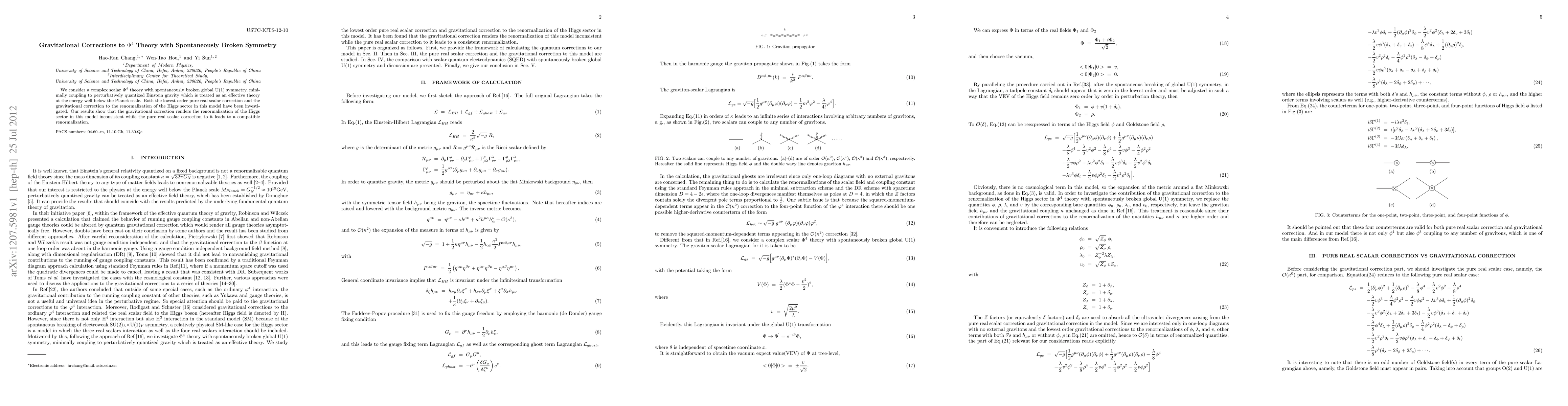 This paper investigates a complex scalar $\Phi^4$ theory with spontaneously broken symmetry, coupled to quantized Einstein gravity, and finds that gravitational corrections lead to inconsistent renormalization of the Higgs sector, whereas pure real scalar corrections maintain compatibility.