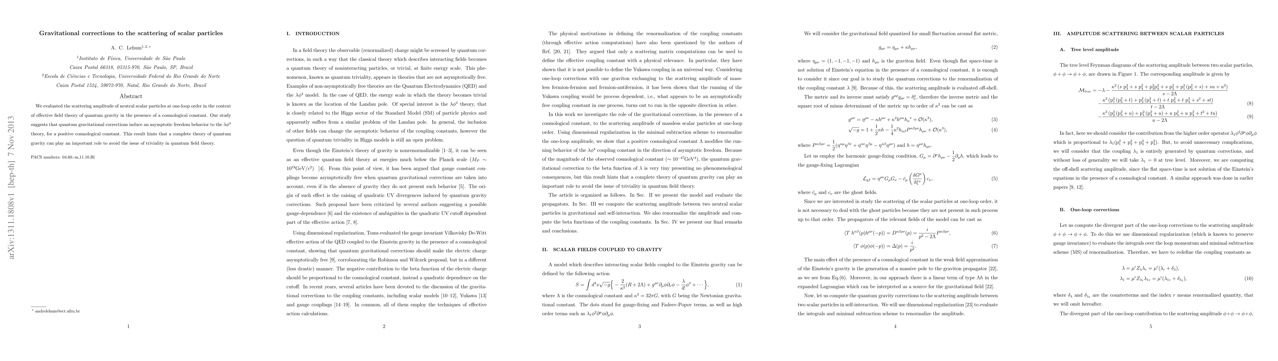 This paper evaluates one-loop scattering amplitudes of scalar particles in quantum gravity with a cosmological constant, revealing that quantum gravitational corrections lead to asymptotic freedom in $\lambda\phi^4$ theory, suggesting quantum gravity's role in resolving quantum field theory's triviality issue.