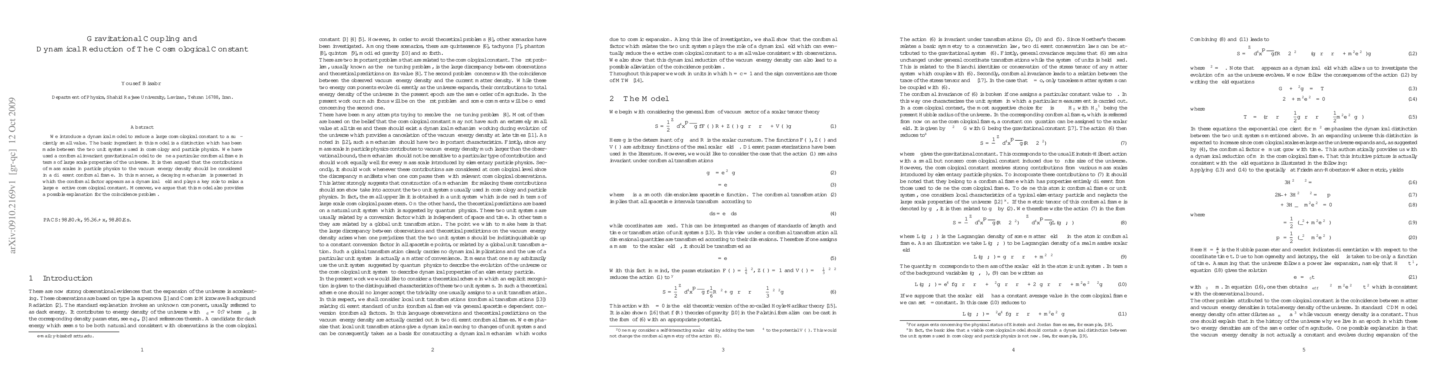 The paper proposes a conformal transformation-based dynamical model to address the cosmological constant problem, distinguishing between unit systems in cosmology and particle physics.
