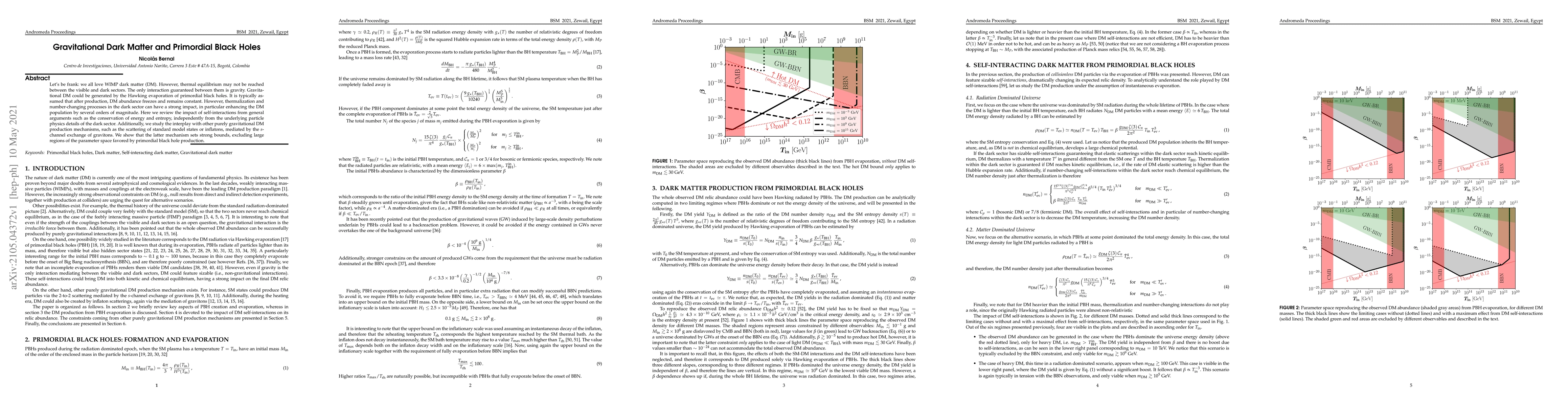 Let's be frank: we all love WIMP dark matter (DM). However, thermal equilibrium may not be reached between the visible and dark sectors. The only interaction guaranteed between them is gravity. Gravitational DM could be generated by the Hawking evaporation of primordial black holes. It is typically assumed that after production, DM abundance freezes and remains constant. However, thermalization and number-changing processes in the dark sector can have a strong impact, in particular enhancing the DM population by several orders of magnitude. Here we review the impact of self-interactions from general arguments such as the conservation of energy and entropy, independently from the underlying particle physics details of the dark sector. Additionally, we study the interplay with other purely gravitational DM production mechanisms, such as the scattering of standard model states or inflatons, mediated by the $s$-channel exchange of gravitons. We show that the latter mechanism sets strong bounds, excluding large regions of the parameter space favored by primordial black hole production.