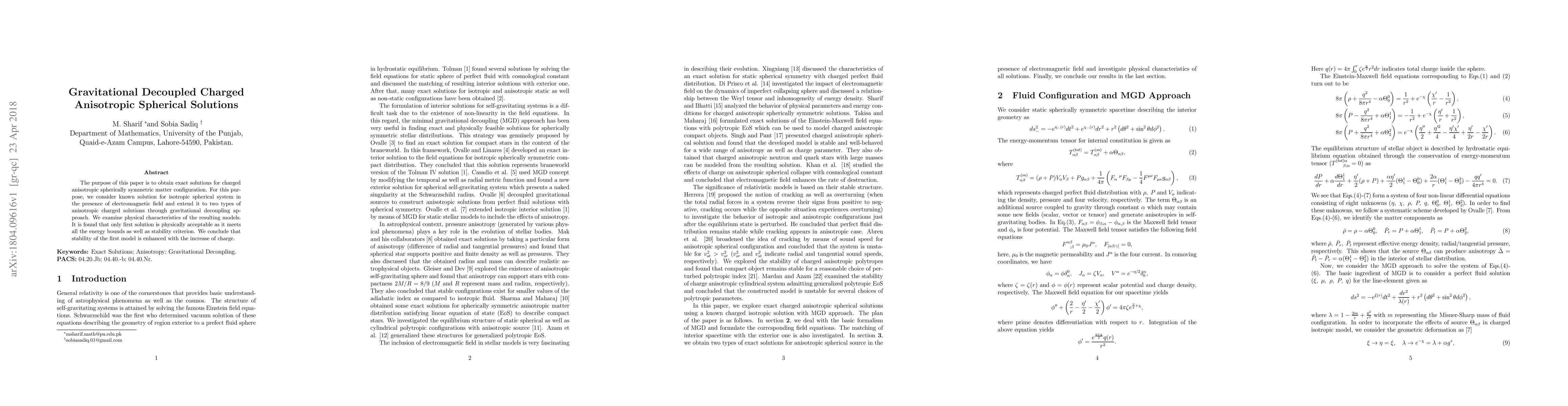 This paper presents exact solutions for charged anisotropic spherical matter configurations, extending known isotropic solutions via gravitational decoupling. Only the first anisotropic solution meets physical criteria and stability, with enhanced stability as charge increases.