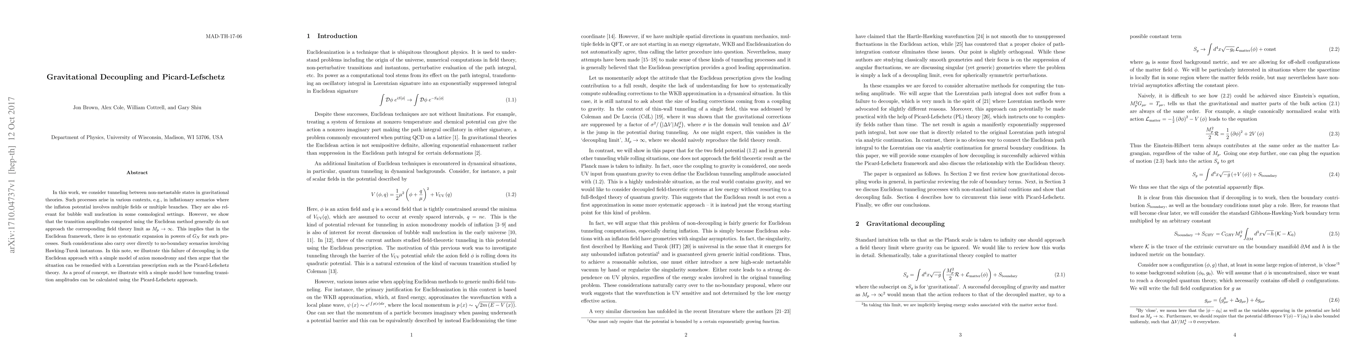 The paper introduces and demonstrates the application of the Picard-Lefschetz formalism to resolve issues of decoupling in gravitational tunneling processes, offering a Lorentzian alternative to traditional Euclidean methods.