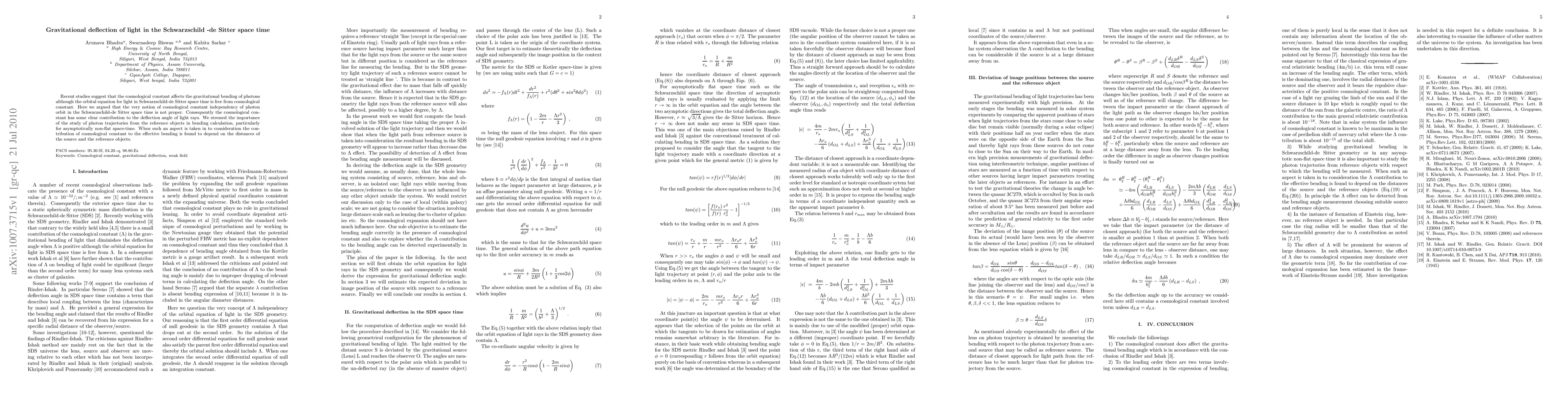 This paper argues that the cosmological constant influences the gravitational deflection of light in Schwarzschild-de Sitter space-time, contrary to previous assumptions. The study highlights the importance of considering photon trajectories and distances in the calculation, revealing that the cosmological constant's effect on light bending depends on the source and reference object distances.