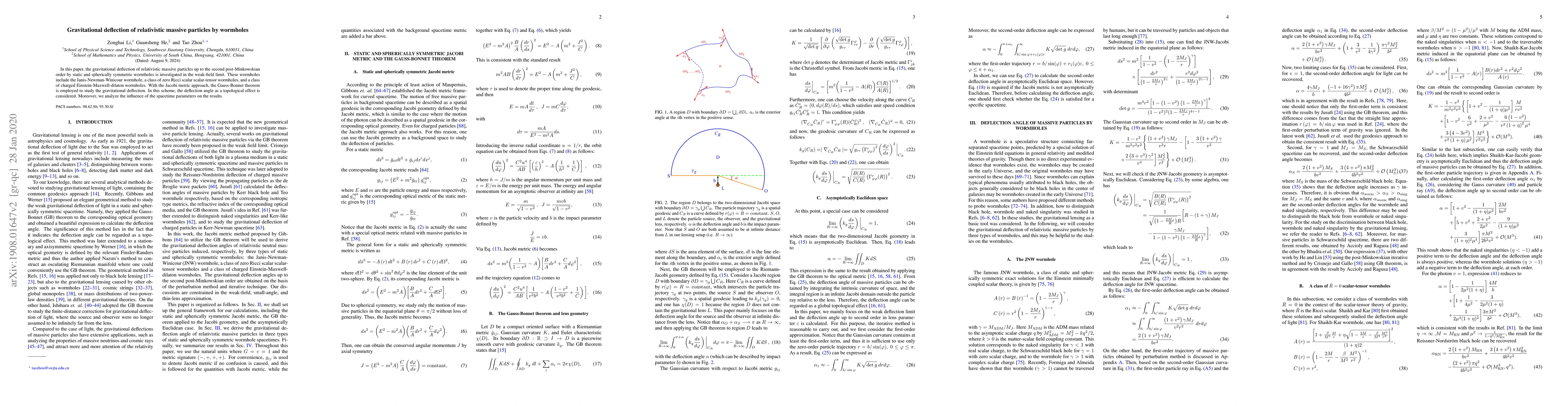 This paper investigates the gravitational deflection of relativistic massive particles by static and spherically symmetric wormholes, including Janis-Newman-Winicour, zero Ricci scalar, and charged Einstein-Maxwell-dilaton types, using the Jacobi metric approach and the Gauss-Bonnet theorem in the weak-field limit. The study focuses on the deflection angle as a topological effect and examines the influence of spacetime parameters.