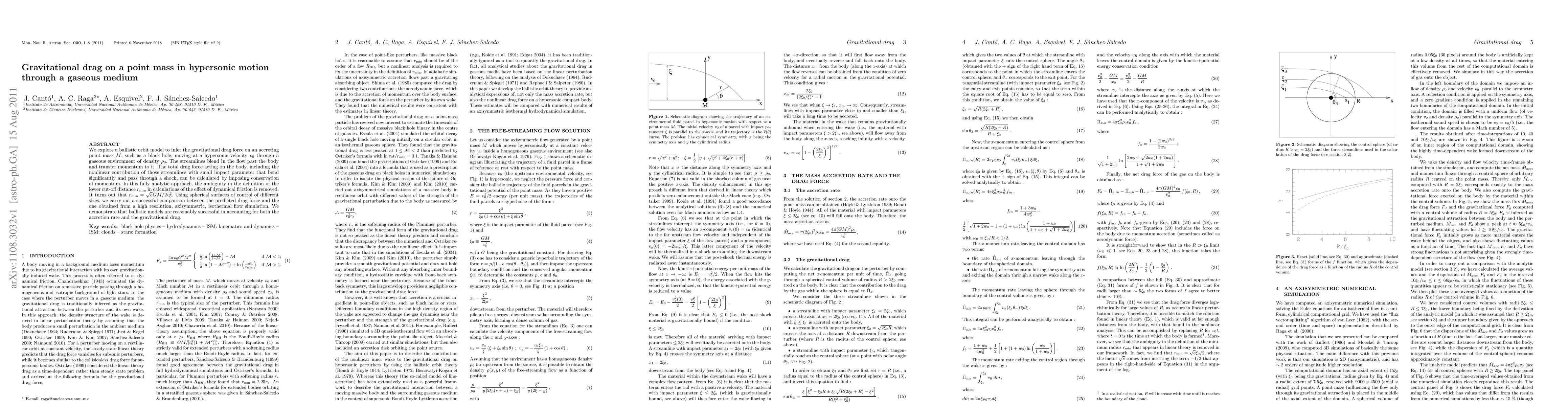 The research employs a ballistic orbit model to calculate the gravitational drag force on a point mass, such as a black hole, moving at hypersonic velocity through a gaseous medium. It removes ambiguity in the definition of the minimum cut-off distance and compares the predicted drag force with high-resolution, axisymmetric, isothermal flow simulations.