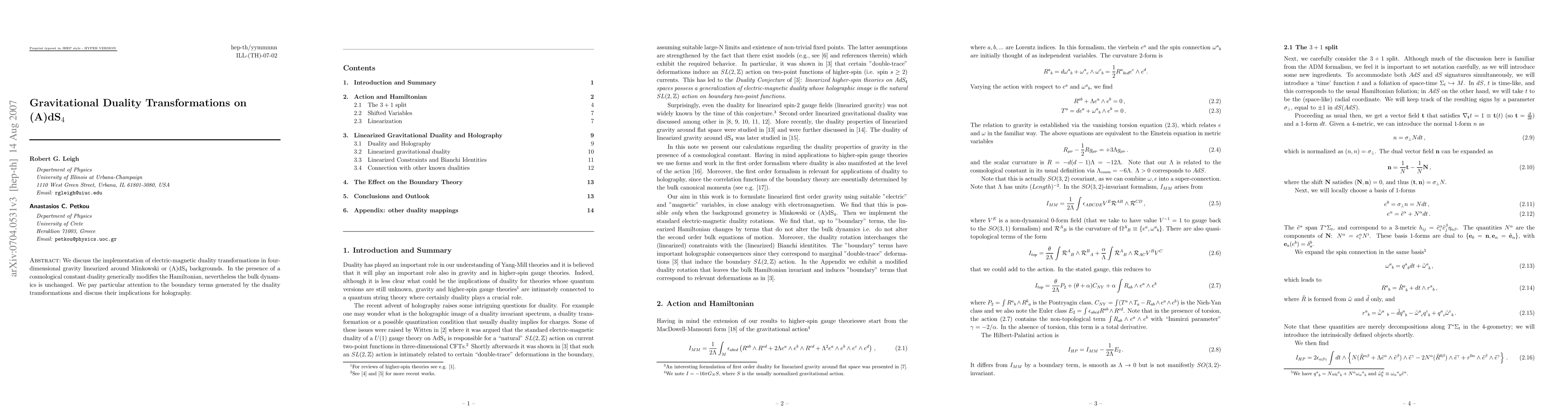 We discuss the implementation of electric-magnetic duality transformations in four-dimensional gravity linearized around Minkowski or (A)dS4 backgrounds. In the presence of a cosmological constant duality generically modifies the Hamiltonian, nevertheless the bulk dynamics is unchanged. We pay particular attention to the boundary terms generated by the duality transformations and discuss their implications for holography.