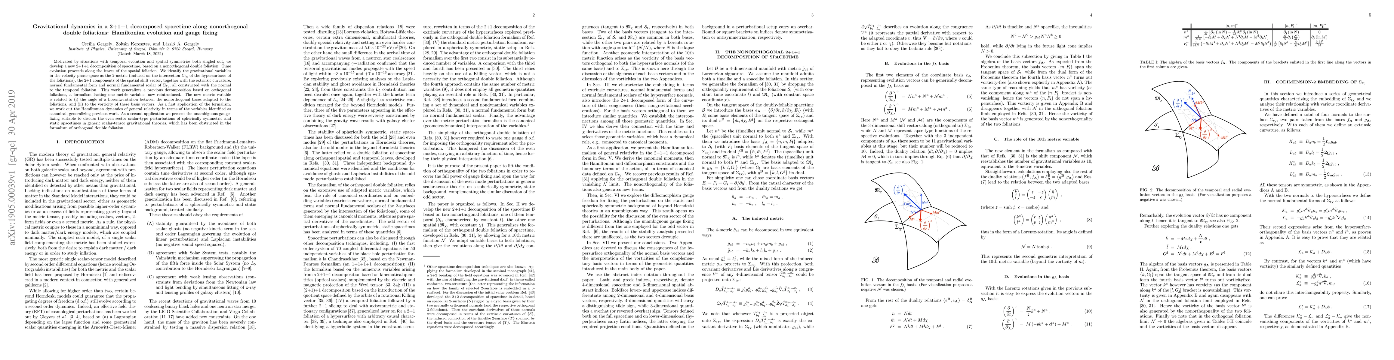 Motivated by situations with temporal evolution and spatial symmetries both singled out, we develop a new 2+1+1 decomposition of spacetime, based on a nonorthogonal double foliation. Time evolution proceeds along the leaves of the spatial foliation. We identify the gravitational variables in the velocity phase-space as the 2-metric (induced on the intersection $\Sigma_{t\chi }$ of the hypersurfaces of the foliations), the 2+1 components of the spatial shift vector, together with the extrinsic curvature, normal fundamental form and normal fundamental scalar of $\Sigma _{t\chi }$, all constructed with the normal to the temporal foliation. This work generalizes a previous decomposition based on orthogonal foliations, a formalism lacking one metric variable, now reintroduced. The new metric variable is related to (i) the angle of a Lorentz-rotation between the nonorthogonal bases adapted to the foliations, and (ii) to the vorticity of these basis vectors. As a first application of the formalism, we work out the Hamiltonian dynamics of general relativity in terms of the variables identified as canonical, generalizing previous work. As a second application we present the unambiguous gauge-fixing suitable to discuss the even sector scalar-type perturbations of spherically symmetric and static spacetimes in generic scalar-tensor gravitational theories, which has been obstructed in the formalism of orthogonal double foliation.