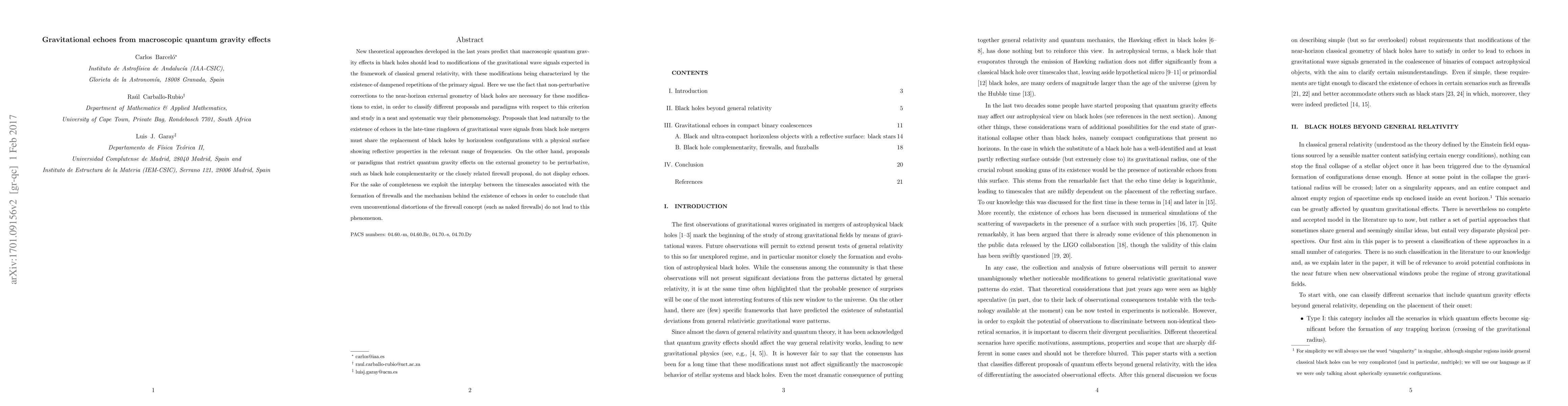 This paper explores how macroscopic quantum gravity effects in black holes could modify gravitational wave signals, leading to "gravitational echoes." It finds that non-perturbative corrections to the black hole's geometry are necessary for echoes to exist, ruling out perturbative models like black hole complementarity or firewalls.