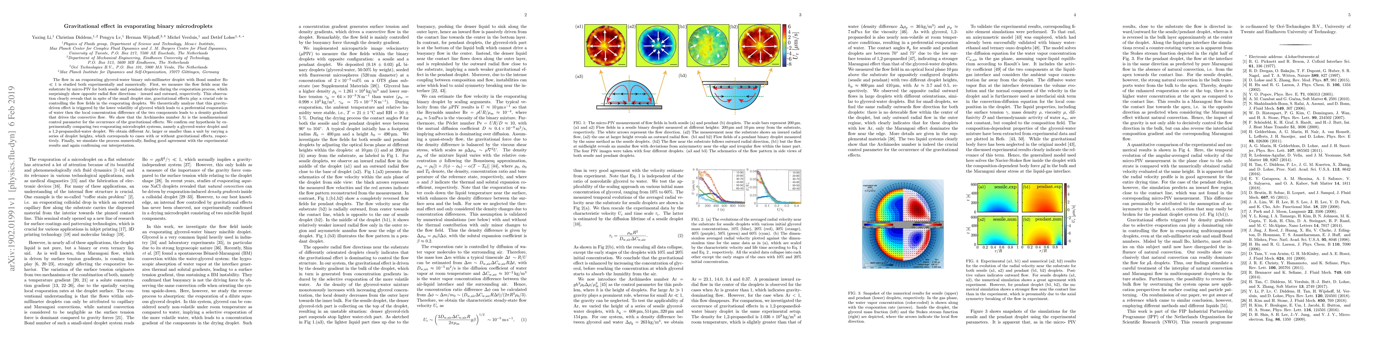 Researchers studied evaporating binary microdroplets to find that gravity plays a significant role in controlling flow fields despite small droplet sizes, and developed a control parameter for gravity-driven effects.