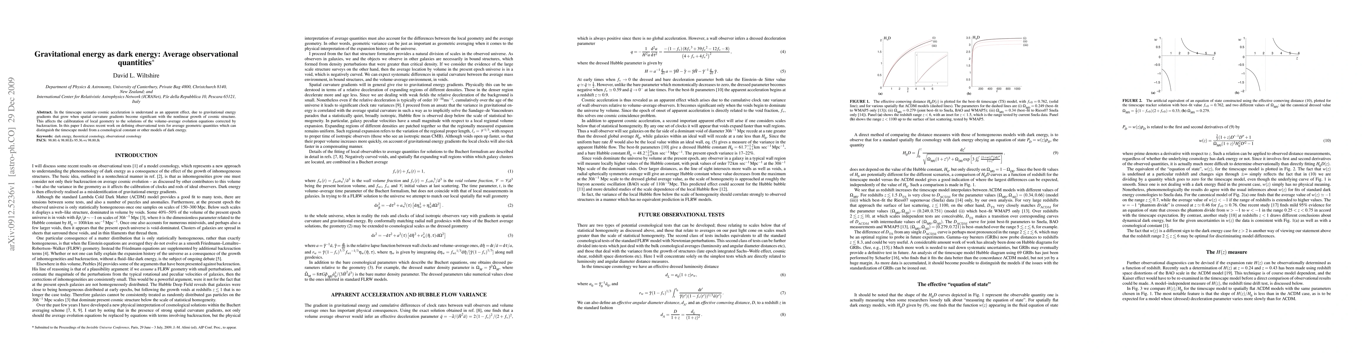 In the timescape scenario cosmic acceleration is understand as an apparent effect, due to gravitational energy gradients that grow when spatial curvature gradients become significant with the nonlinear growth of cosmic structure. This affects the calibratation of local geometry to the solutions of the volume-average evolution equations corrected by backreaction. In this paper I discuss recent work on defining observational tests for average geometric quantities which can distinguish the timescape model from a cosmological constant or other models of dark energy.