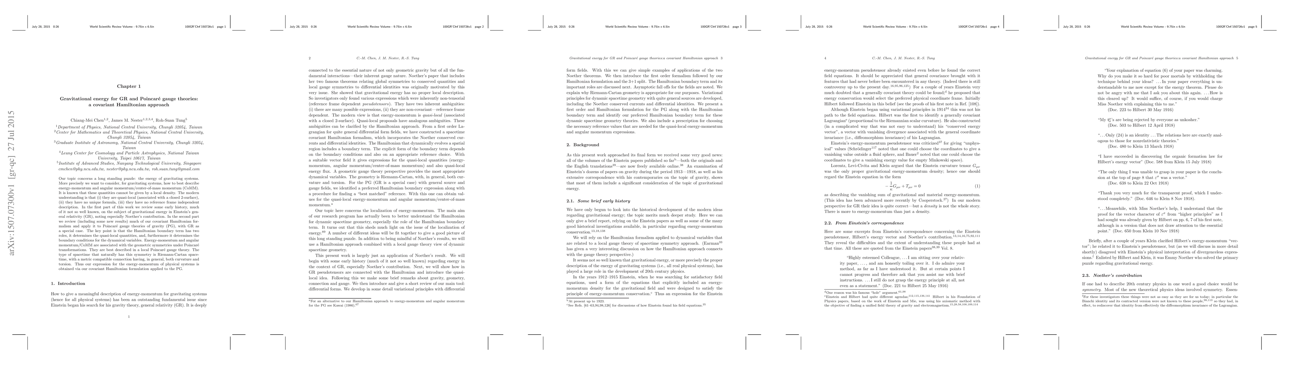 Our topic concerns a long standing puzzle: the energy of gravitating systems. More precisely we want to consider, for gravitating systems, how to best describe energy-momentum and angular momentum/center-of-mass momentum (CoMM). It is known that these quantities cannot be given by a local density. The modern understanding is that (i) they are quasi-local (associated with a closed 2-surface), (ii) they have no unique formula, (iii) they have no reference frame independent description. In the first part of this work we review some early history, much of it not so well known, on the subject of gravitational energy in Einstein's general relativity (GR), noting especially Noether's contribution. In the second part we review (including some new results) much of our covariant Hamiltonian formalism and apply it to Poincar\'e gauge theories (GR is a special case). The key point is that the Hamiltonian boundary term has two roles, it determines the quasi-local quantities, and, furthermore it determines the boundary conditions for the dynamical variables. Energy-momentum and angular momentum/CoMM are associated with the geometric symmetries under Poincar\'e transformations. They are best described in a local Poincar\'e gauge theory. The type of spacetime that naturally has this symmetry is Riemann-Cartan spacetime, with a metric compatible connection having, in general, both curvature and torsion. Thus our expression for the energy-momentum of physical systems is obtained via our covariant Hamiltonian formulation applied to Poincar\'e gauge theories.