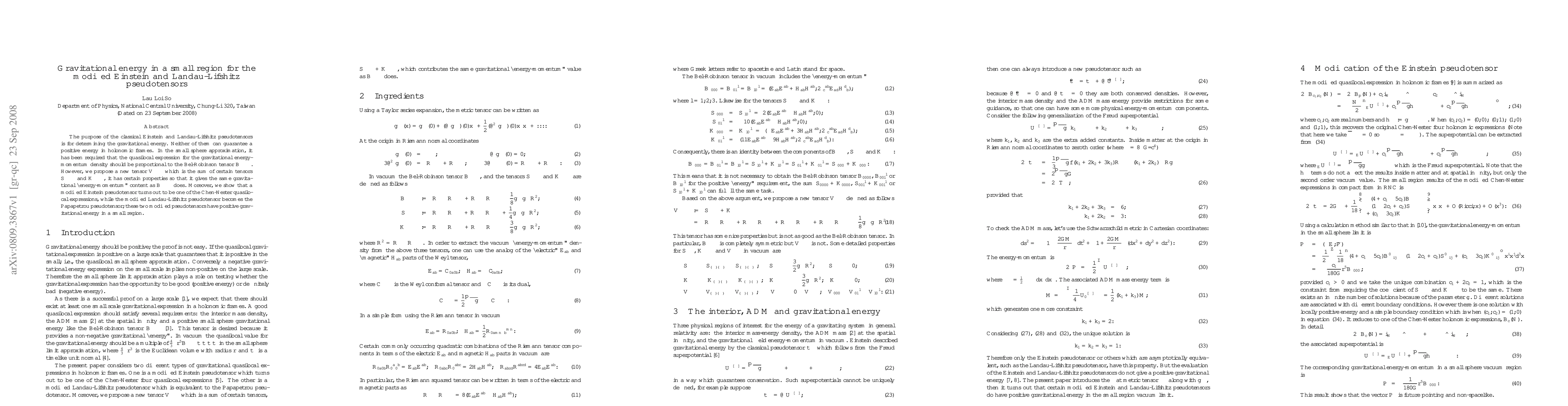 This paper proposes new tensors $V_{\alpha\beta\mu\nu}$ derived from $S_{\alpha\beta\mu\nu}$ and $K_{\alpha\beta\mu\nu}$ to determine gravitational energy, showing that modified Einstein and Landau-Lifshitz pseudotensors yield positive gravitational energy in small regions.