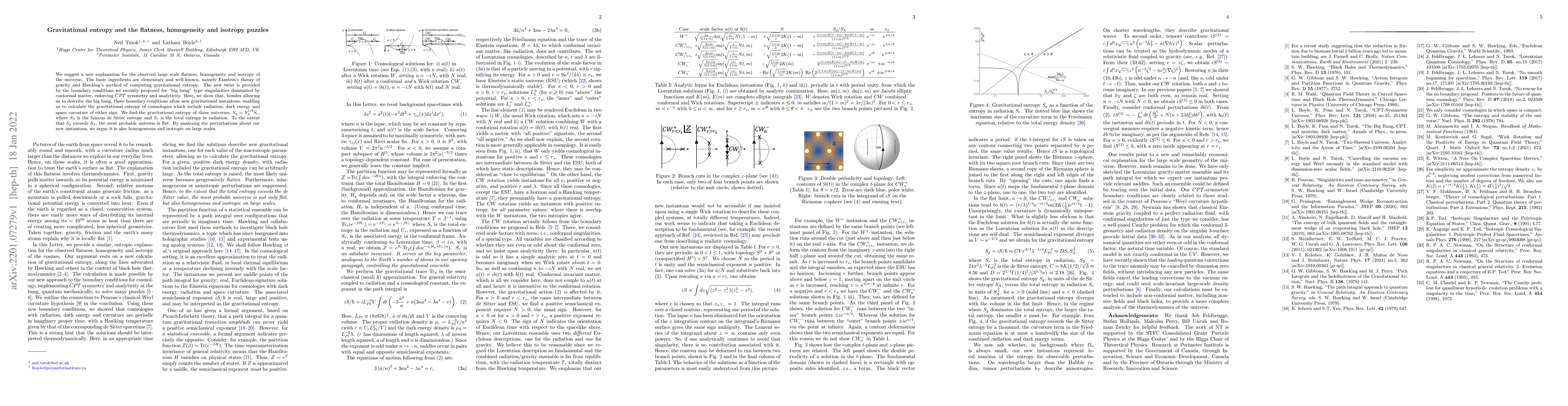 We suggest a new explanation for the observed large scale flatness, homogeneity and isotropy of the universe. The basic ingredients are elementary and well-known, namely Einstein's theory of gravity and Hawking's method of computing gravitational entropy. The new twist is provided by the boundary conditions we recently proposed for "big bang" type singularities dominated by conformal matter, enforcing $CPT$ symmetry and analyticity. Here, we show that, besides allowing us to describe the big bang, these boundary conditions allow new gravitational instantons, enabling us to calculate the gravitational entropy of cosmologies which include radiation, dark energy and space curvature of either sign. We find the gravitational entropy of these universes, $S_g \sim S_\Lambda^{1/ 4} S_r$, where $S_\Lambda$ is the famous de Sitter entropy and $S_r$ is the total entropy in radiation. To the extent that $S_g$ exceeds $S_\Lambda$, the most probable universe is flat. By analysing the perturbations about our new instantons, we argue it is also homogeneous and isotropic on large scales.