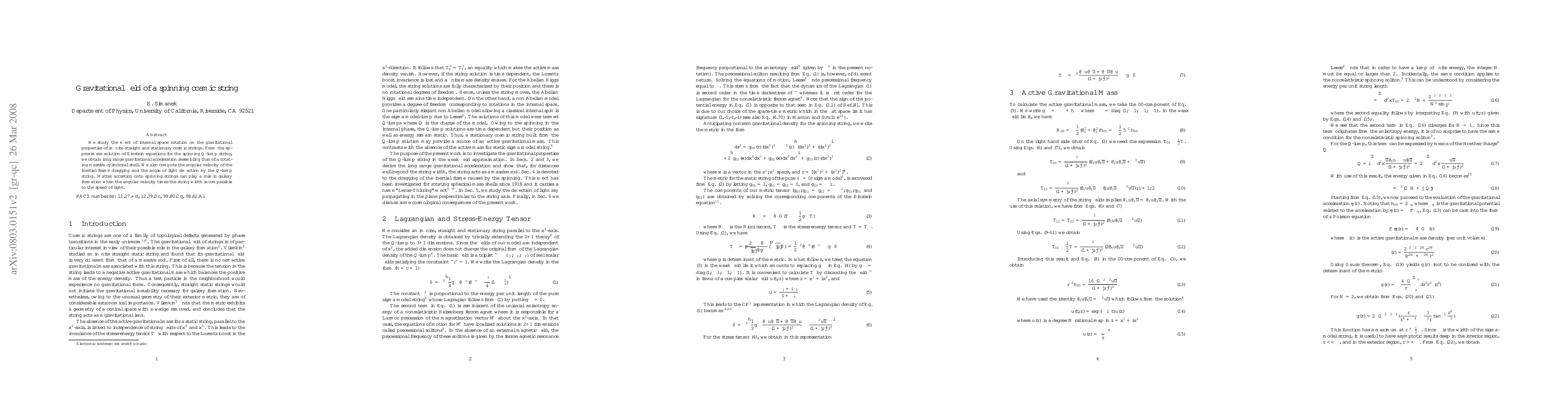 This paper investigates how the rotation of a cosmic string influences its gravitational field, finding it generates long-range gravitational acceleration akin to a rotating massive cylindrical shell, with implications for galaxy formation via matter accretion onto spinning strings.