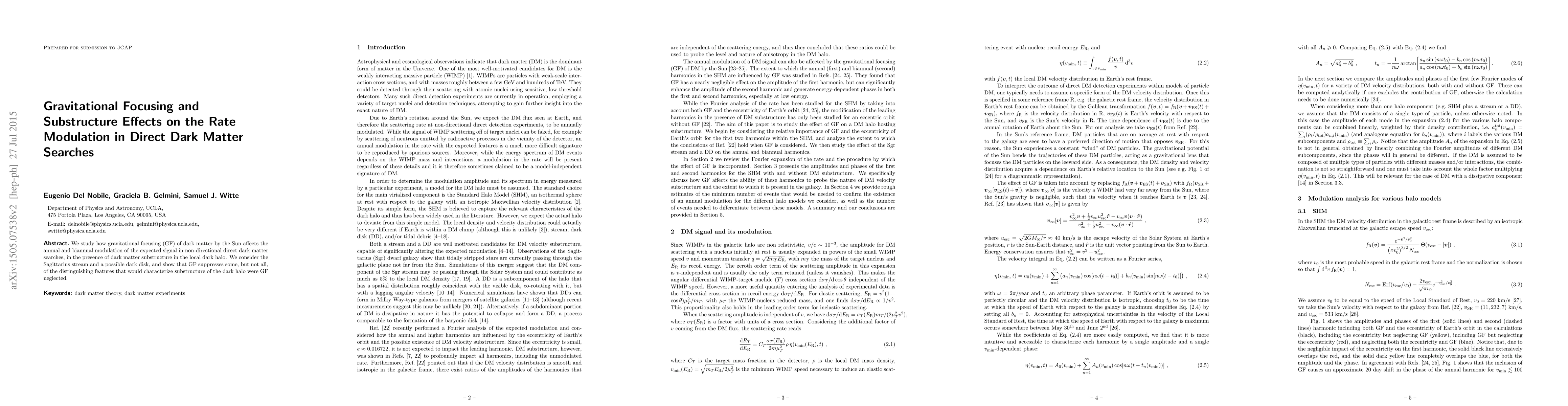 This paper investigates the impact of gravitational focusing by the Sun on the modulation rates in direct dark matter searches, considering the influence of dark matter substructures like the Sagittarius stream and a potential dark disk. The study concludes that while gravitational focusing suppresses some features of dark matter substructure, it does not eliminate all distinguishing characteristics.