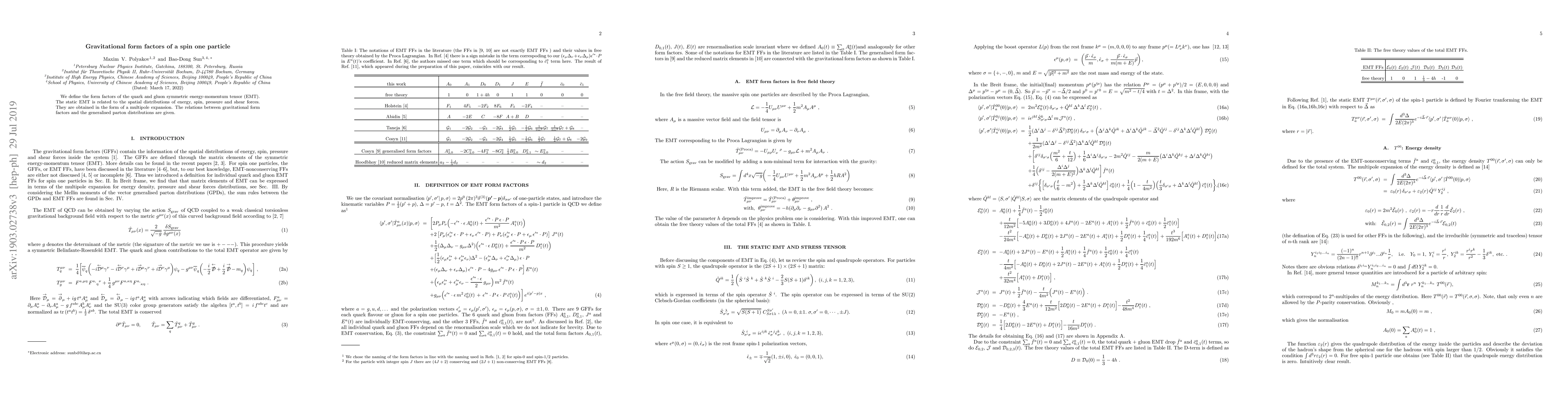 This paper defines gravitational form factors for a spin one particle through the quark and gluon symmetric energy-momentum tensor (EMT), providing a multipole expansion of the static EMT related to energy, spin, pressure, and shear distributions. The study also establishes connections between these form factors and generalised parton distributions.