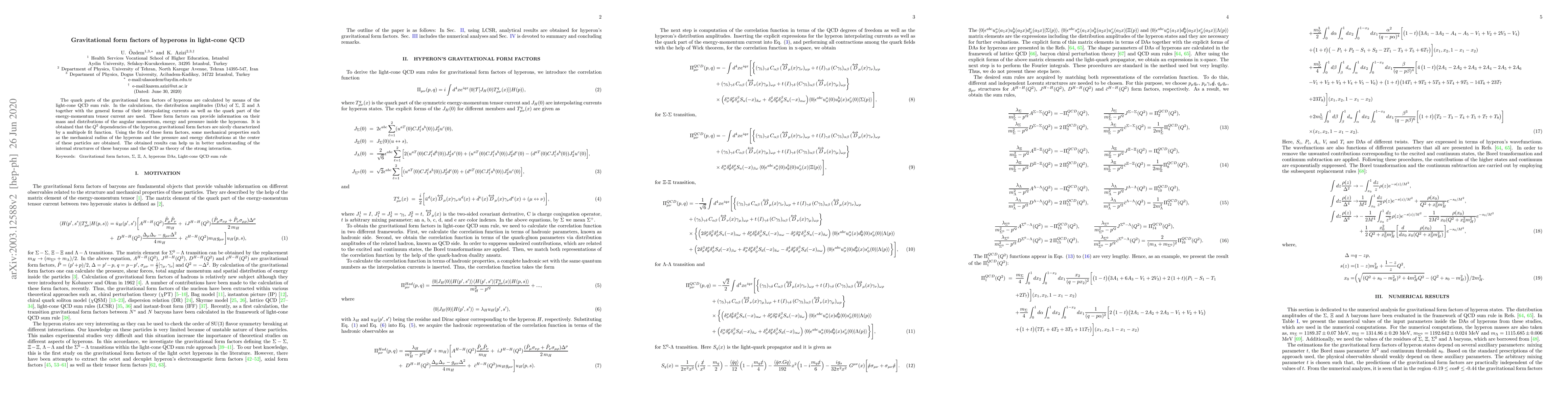 The paper presents a novel calculation of the quark parts of gravitational form factors of hyperons using light-cone QCD sum rules, providing a comprehensive analysis of their mass and internal distribution properties.