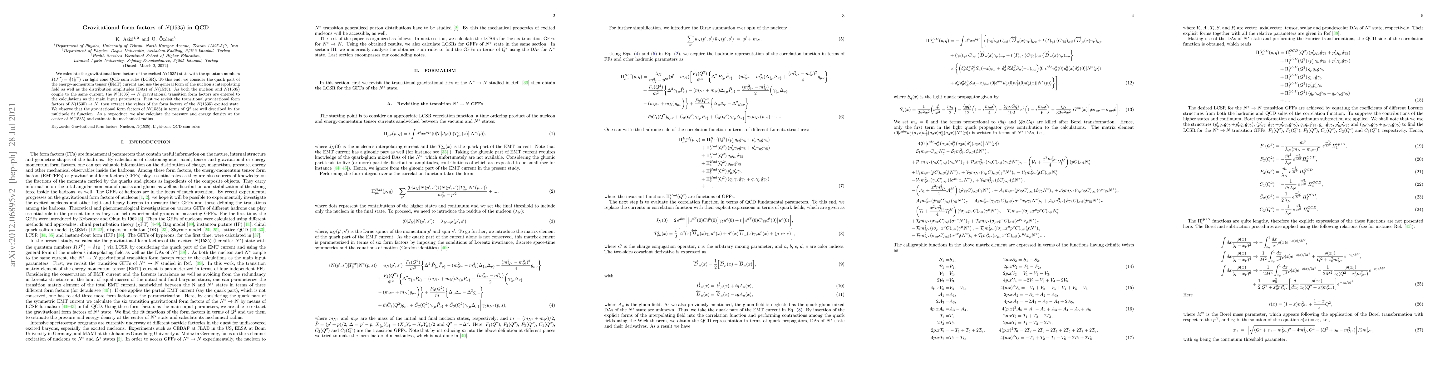 This study calculates the gravitational form factors of the N(1535) excited state using light cone QCD sum rules (LCSR). The researchers employ the quark part of the energy-momentum tensor current and distribution amplitudes (DAs) of N(1535). They find that the gravitational form factors of N(1535) can be well described by a multipole fit function in terms of Q^2. Additionally, they estimate the pressure, energy density, and mechanical radius of N(1535).