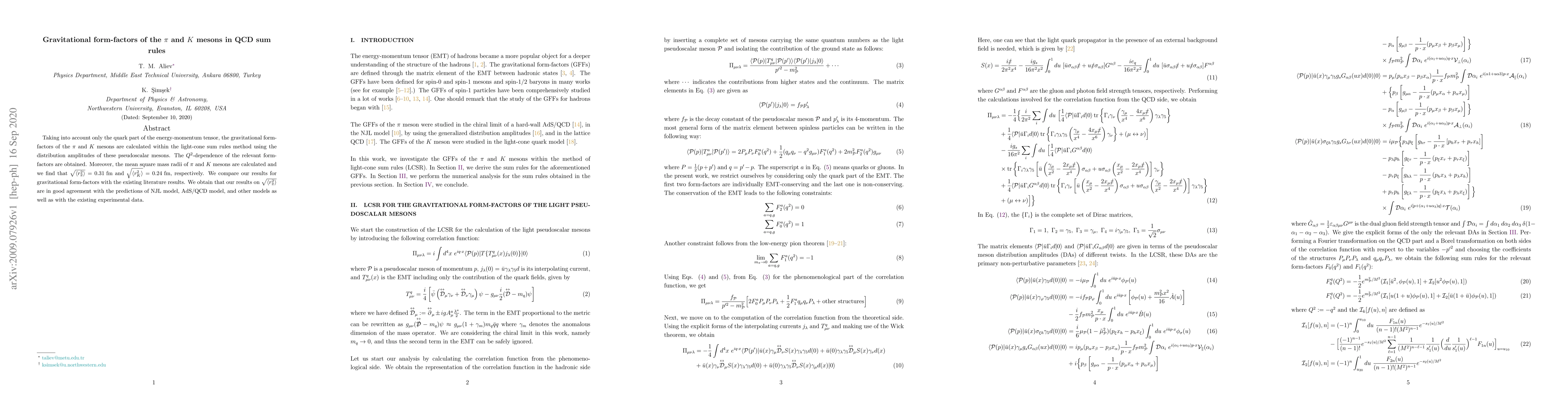 Researchers calculated gravitational form-factors of pi and K mesons using QCD sum rules method, finding good agreement with existing literature results and experimental data.