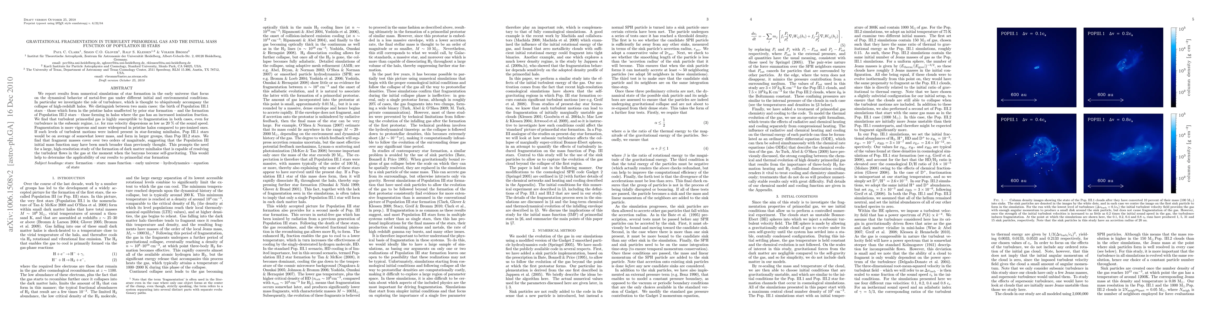 This paper reports on numerical simulations of star formation in primordial gas, showing that turbulence significantly enhances fragmentation, leading to a wide range of fragment masses and an extended initial mass function for Population III stars. Contrary to expectations, pristine halos fragment more vigorously than pre-ionized ones, predicting lower mass and larger groups of Pop III.1 stars.