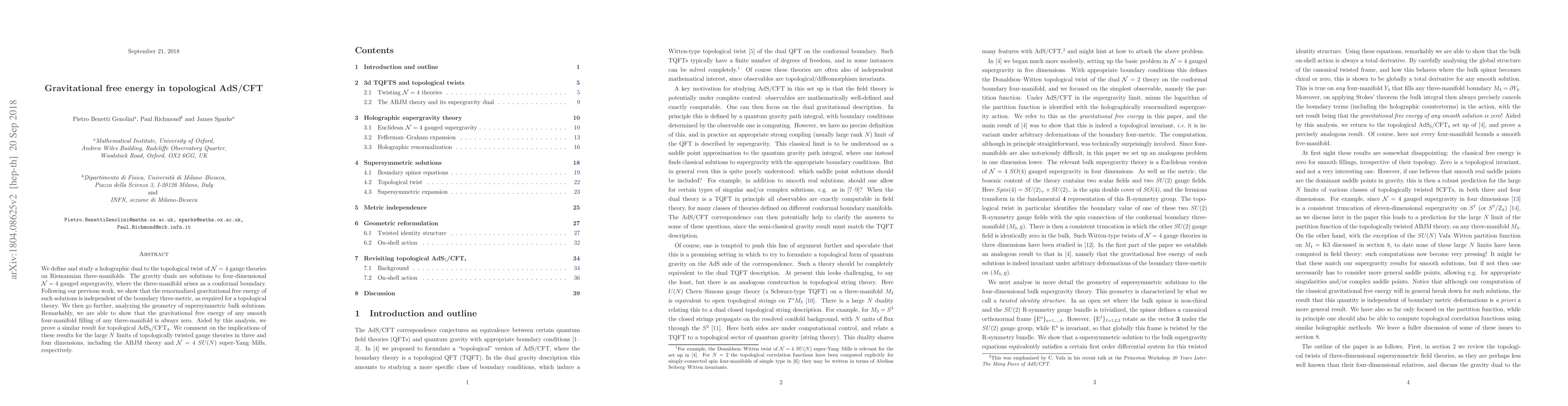 We define and study a holographic dual to the topological twist of $\mathcal{N}=4$ gauge theories on Riemannian three-manifolds. The gravity duals are solutions to four-dimensional $\mathcal{N}=4$ gauged supergravity, where the three-manifold arises as a conformal boundary. Following our previous work, we show that the renormalized gravitational free energy of such solutions is independent of the boundary three-metric, as required for a topological theory. We then go further, analyzing the geometry of supersymmetric bulk solutions. Remarkably, we are able to show that the gravitational free energy of any smooth four-manifold filling of any three-manifold is always zero. Aided by this analysis, we prove a similar result for topological AdS$_5$/CFT$_4$. We comment on the implications of these results for the large $N$ limits of topologically twisted gauge theories in three and four dimensions, including the ABJM theory and $\mathcal{N}=4$ $SU(N)$ super-Yang-Mills, respectively.