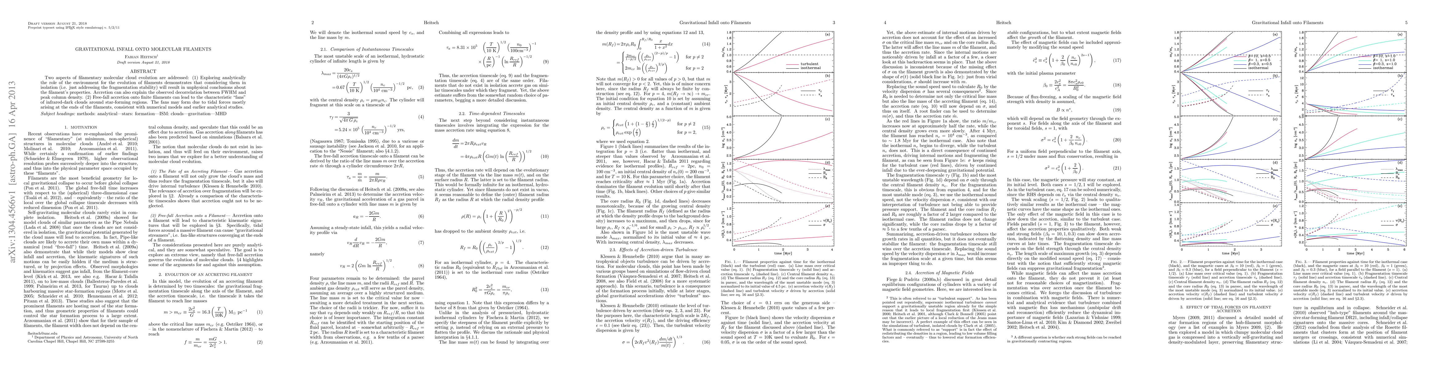 Two aspects of filamentary molecular cloud evolution are addressed: (1) Exploring analytically the role of the environment for the evolution of filaments demonstrates that considering them in isolation (i.e. just addressing the fragmentation stability) will result in unphysical conclusions about the filament's properties. Accretion can also explain the observed decorrelation between FWHM and peak column density. (2) Free-fall accretion onto finite filaments can lead to the characteristic "fans" of infrared-dark clouds around star-forming regions. The fans may form due to tidal forces mostly arising at the ends of the filaments, consistent with numerical models and earlier analytical studies.