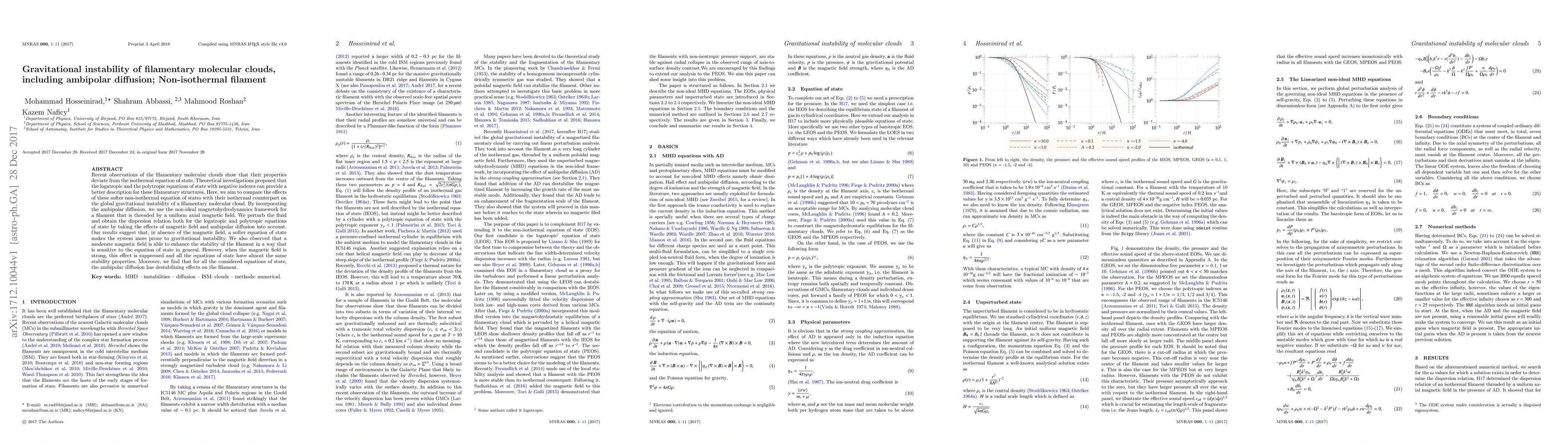 This paper investigates the gravitational instability of filamentary molecular clouds under non-isothermal conditions, including ambipolar diffusion. It finds that softer non-isothermal equations of state make the filaments more prone to instability compared to isothermal models, while a moderate magnetic field enhances stability, though strong magnetic fields suppress this effect.