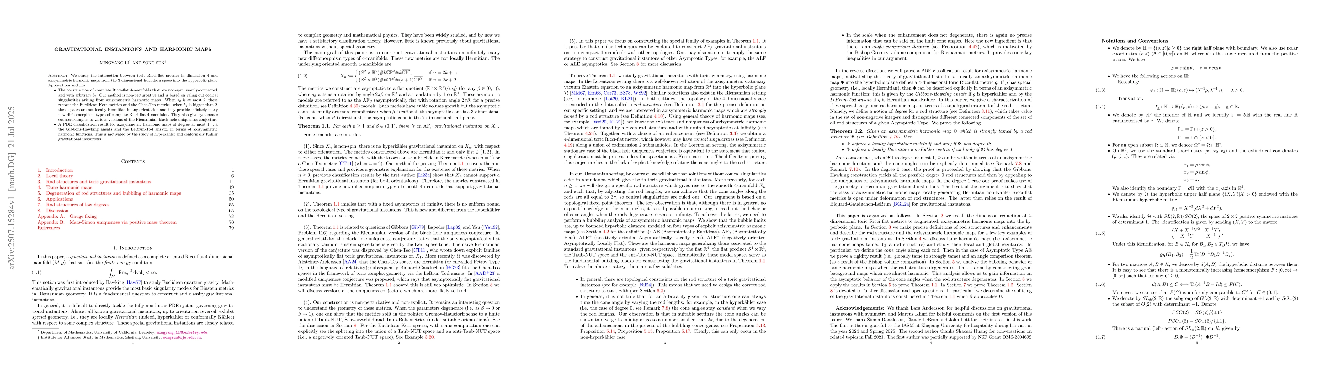 We study the interaction between toric Ricci-flat metrics in dimension 4 and axisymmetric harmonic maps from the 3-dimensional Euclidean space into the hyperbolic plane. Applications include (1). The construction of complete Ricci-flat 4-manifolds that are non-spin, simply-connected, and with arbitrary second Betti number. Our method is non-perturbative and is based on ruling out conical singularities arising from axisymmetric harmonic maps. These metrics also give systematic counterexamples to various versions of the Riemannian black hole uniqueness conjecture. (2). A PDE classification result for axisymmetric harmonic maps of degree at most 1, via the Gibbons-Hawking ansatz and the LeBrun-Tod ansatz, in terms of axisymmetric harmonic functions. This is motivated by the study of hyperkahler and conformally Kahler gravitational instantons.