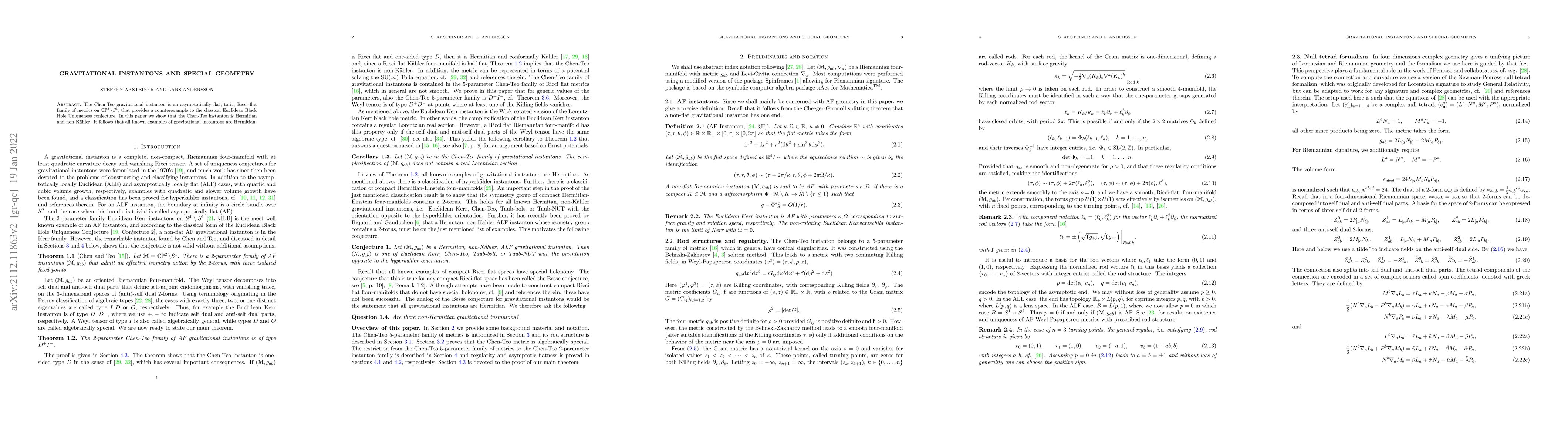 Summary: This paper presents the Chen-Teo gravitational instanton, an asymptotically flat, Ricci flat metric on $\mathbb{C}\mathbb{P}^2$ that challenges the Euclidean Black Hole Uniqueness conjecture. It is shown to be Hermitian and non-Kähler, indicating that all gravitational instantons are Hermitian.