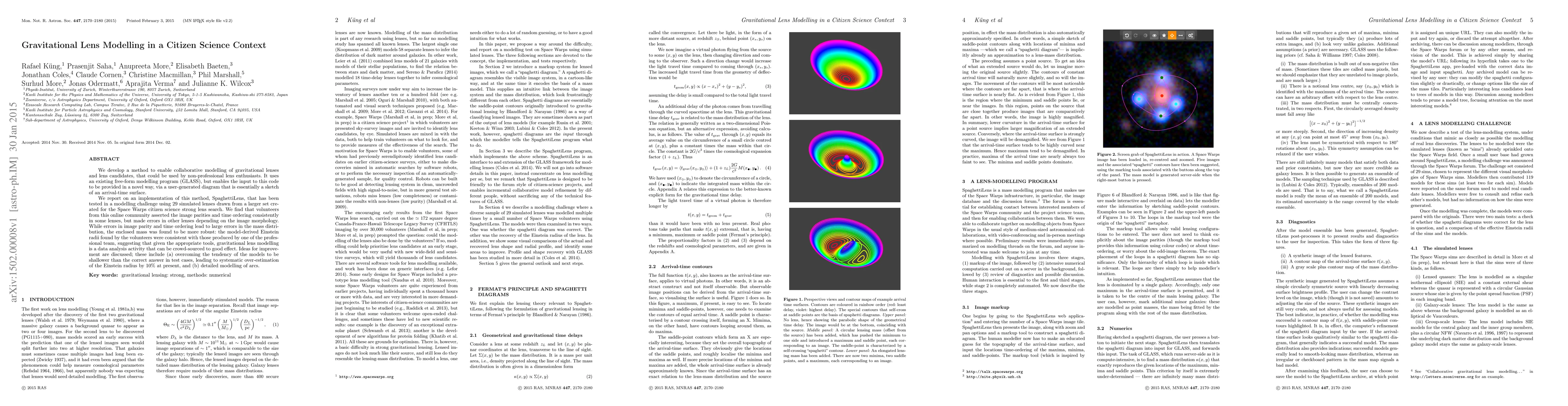 This paper introduces a method for collaborative gravitational lens modelling using a citizen science approach, enabling non-professionals to participate via a user-friendly diagram interface. The implementation, SpaghettiLens, shows that volunteers can accurately determine image parities and time ordering, though errors in image morphology can occur, while still producing consistent Einstein radii estimates.