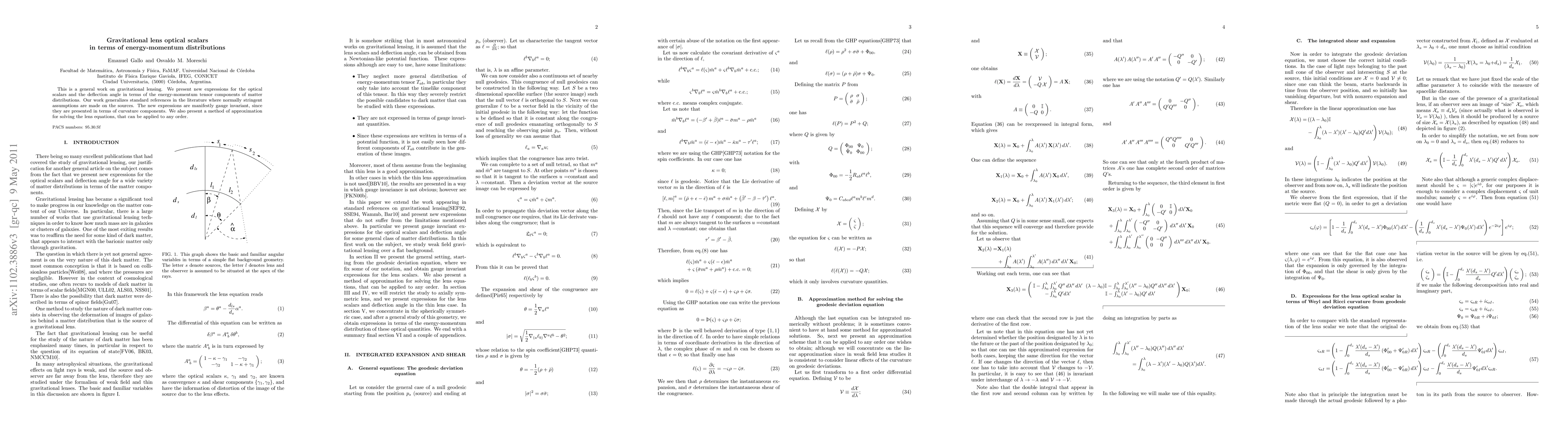 This is a general work on gravitational lensing. We present new expressions for the optical scalars and the deflection angle in terms of the energy-momentum tensor components of matter distributions. Our work generalizes standard references in the literature where normally stringent assumptions are made on the sources. The new expressions are manifestly gauge invariant, since they are presented in terms of curvature components. We also present a method of approximation for solving the lens equations, that can be applied to any order.